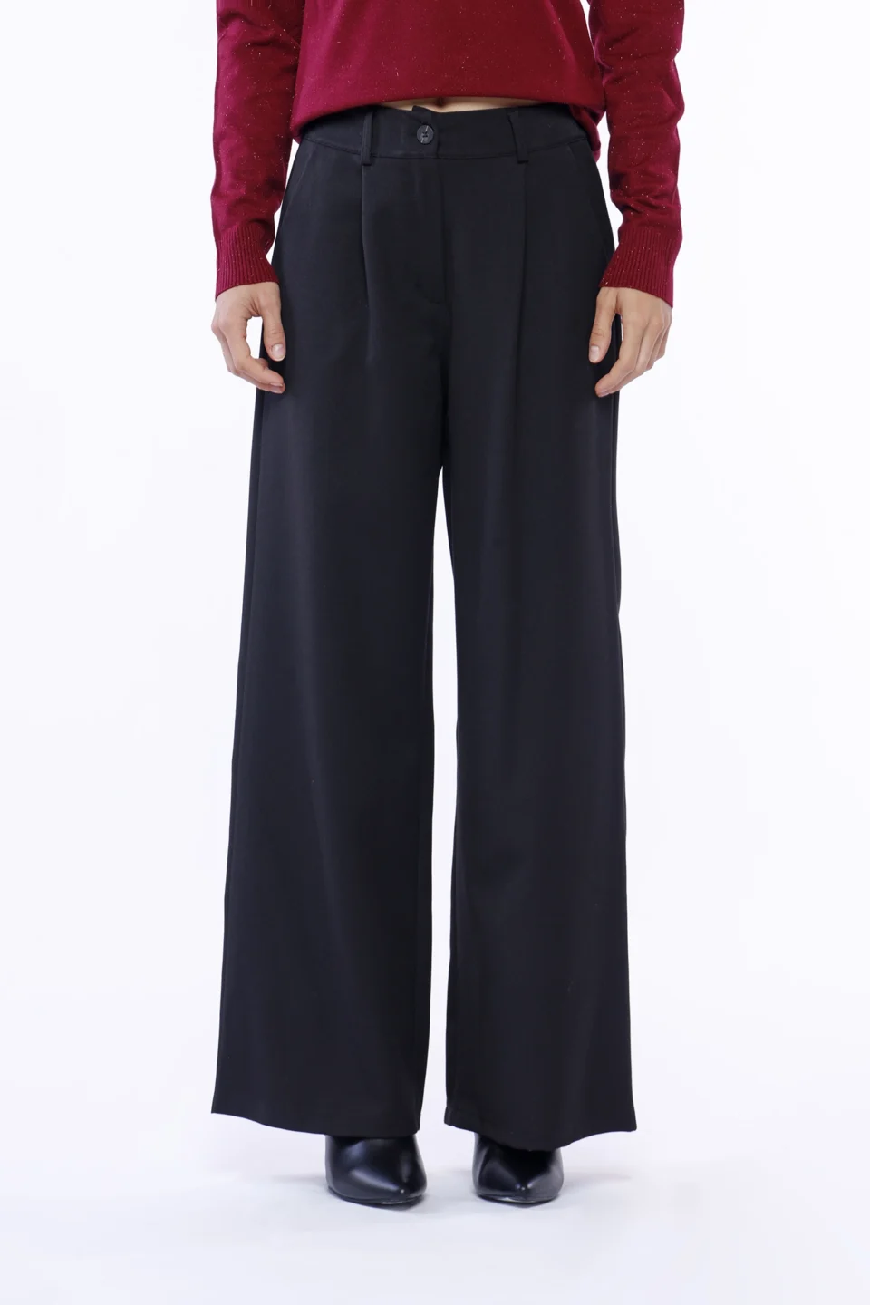 Abito in maglia casual tessuto in morbida viscosa con collo alto e intrecci ricamati sulle maniche e fino alla vita con orli a costine
