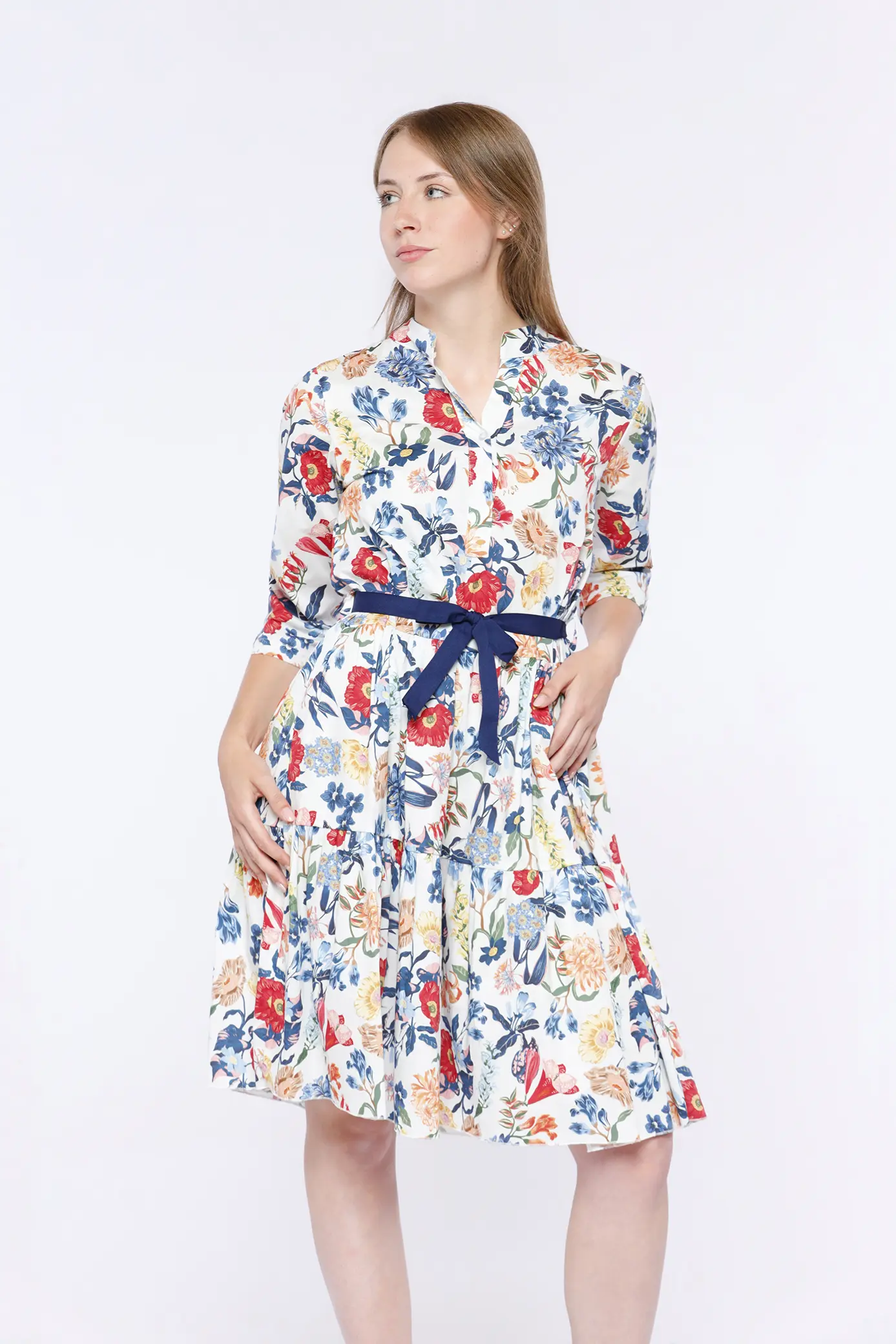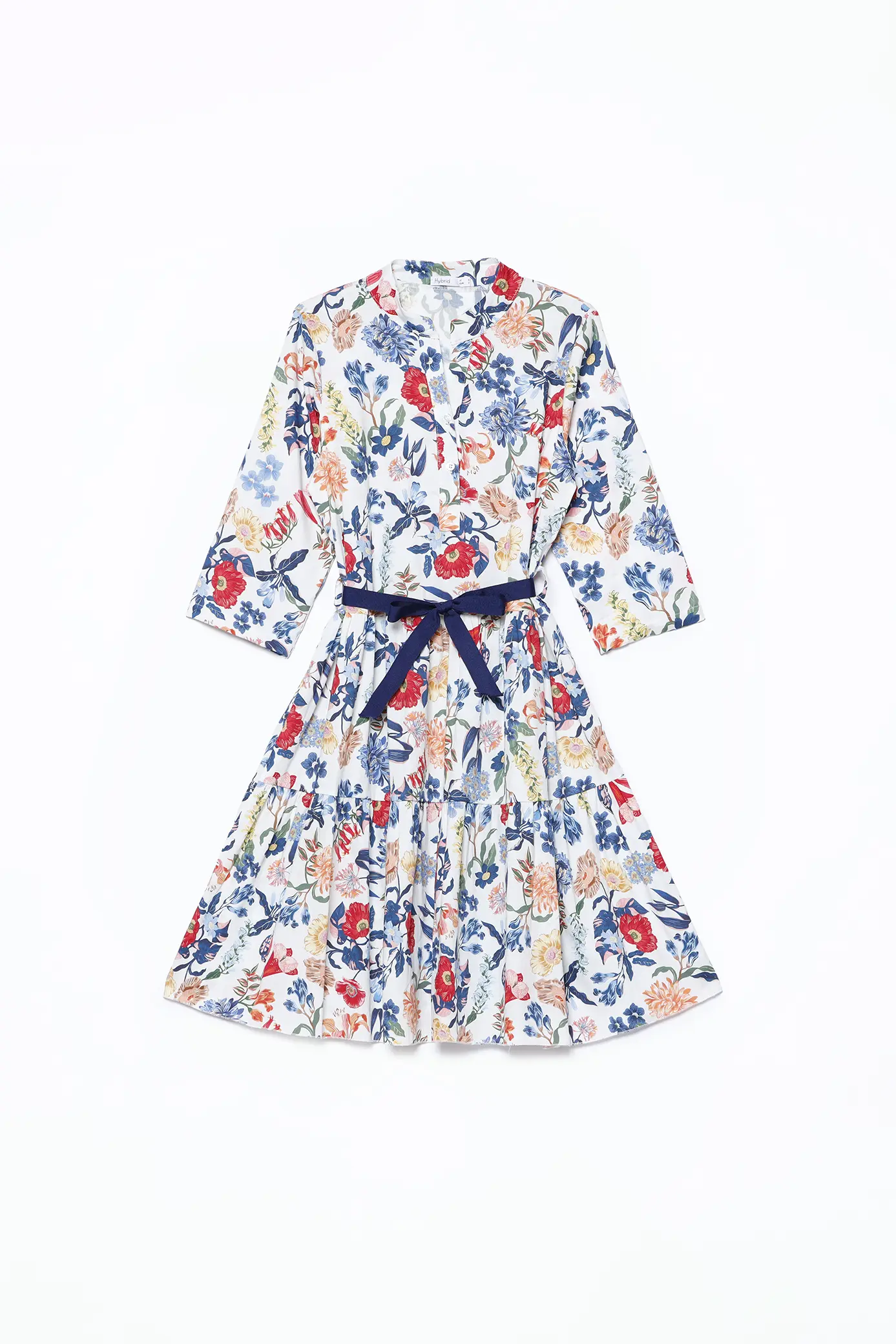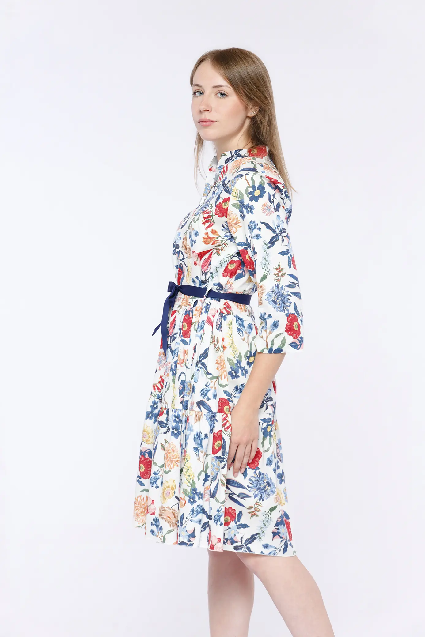 ABITO chemisier in fresco cotone a fantasia fiori di campo con grazioso nastro in vita