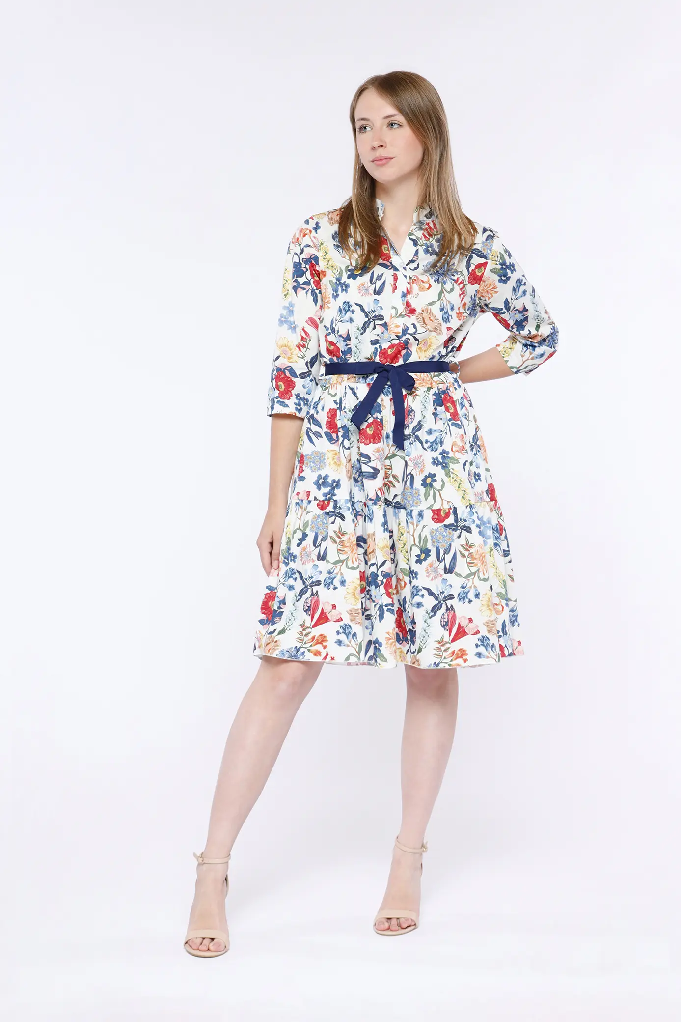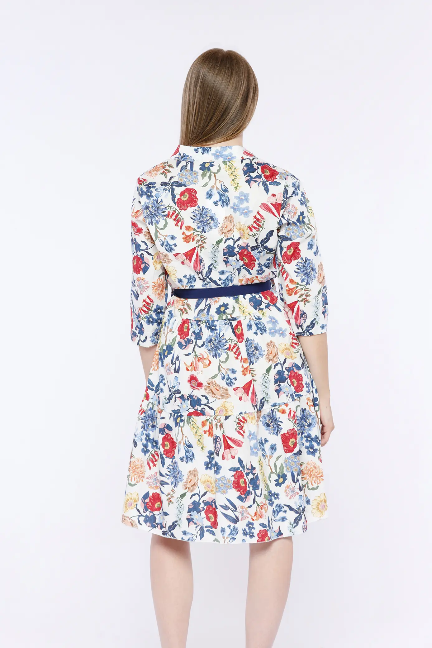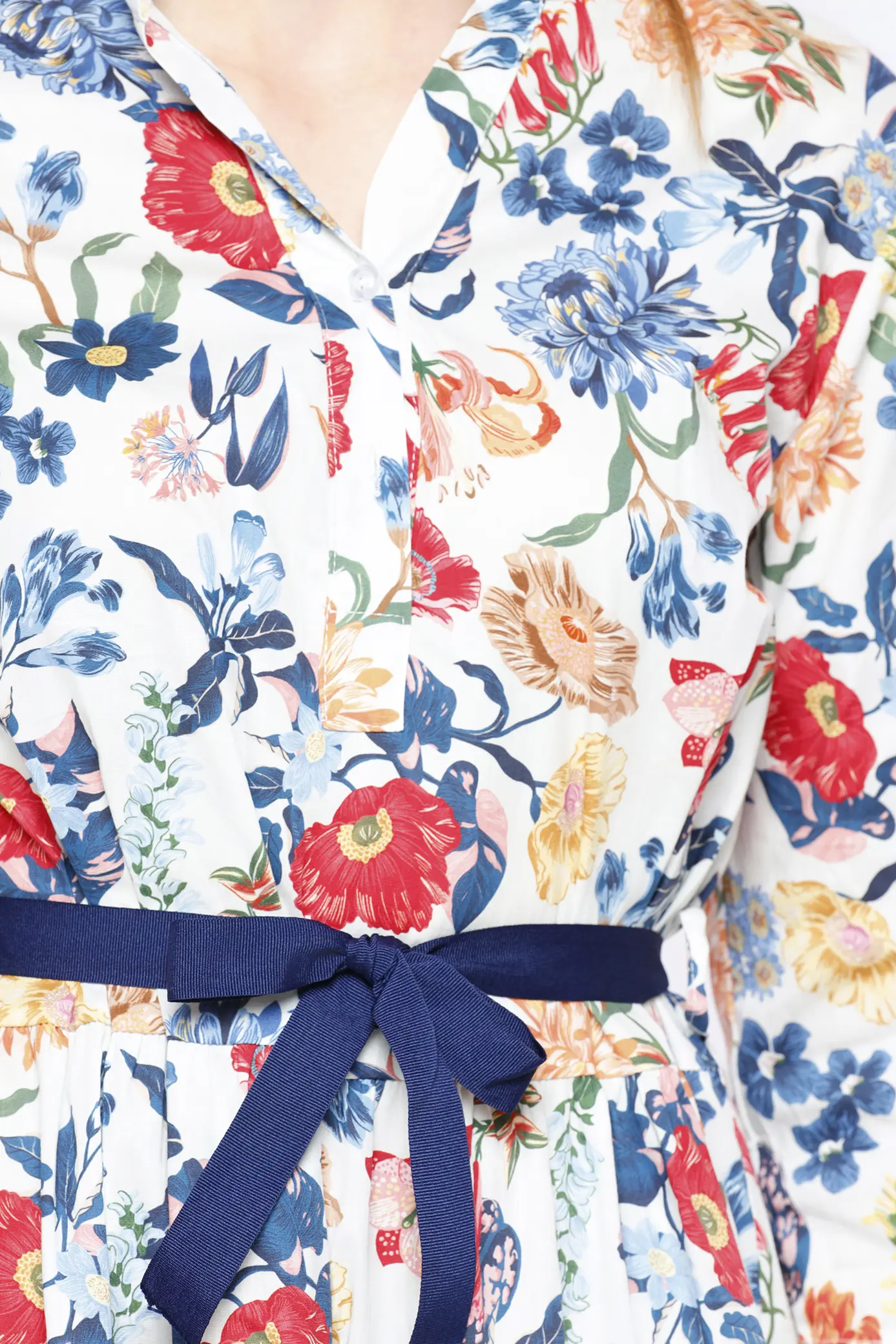 ABITO chemisier in fresco cotone a fantasia fiori di campo con grazioso nastro in vita