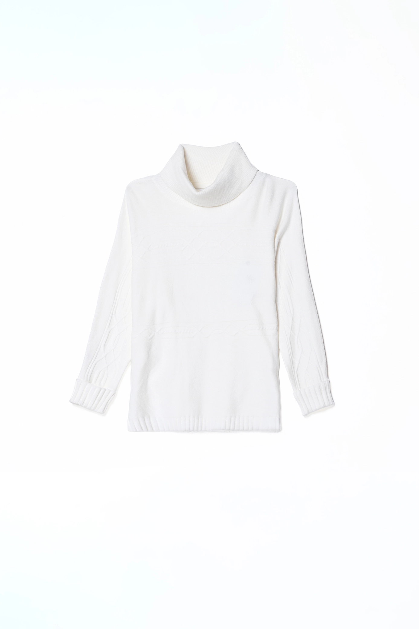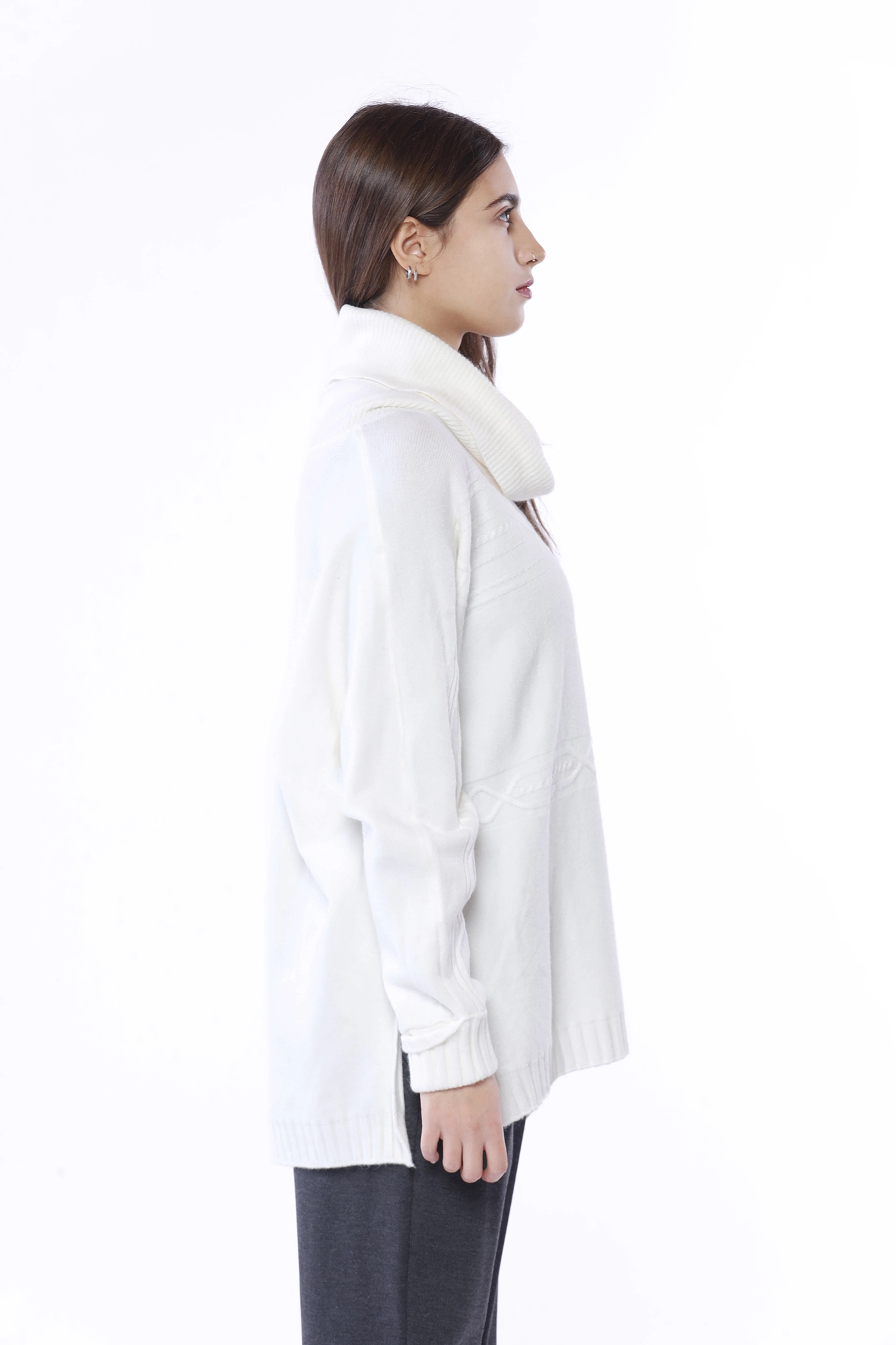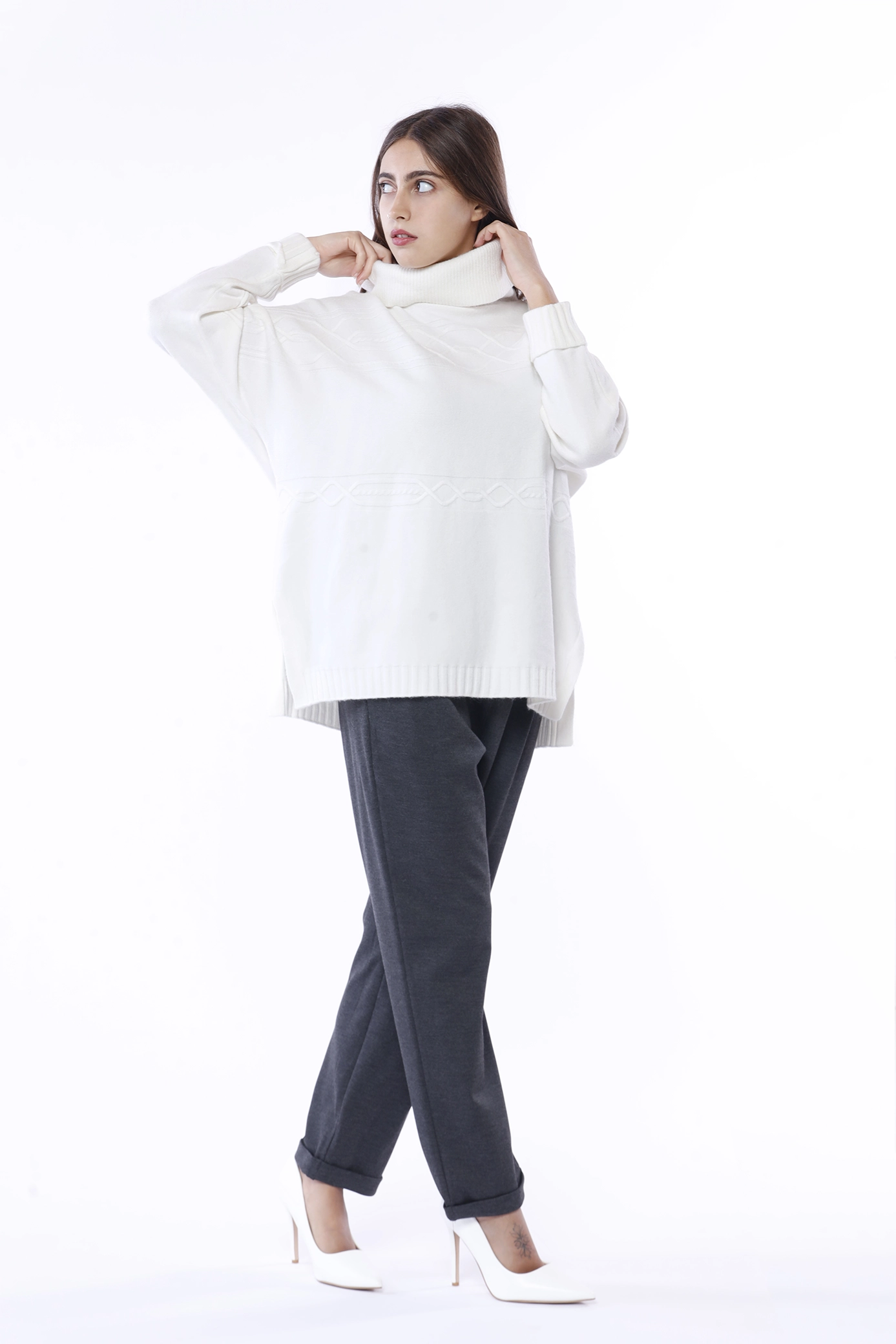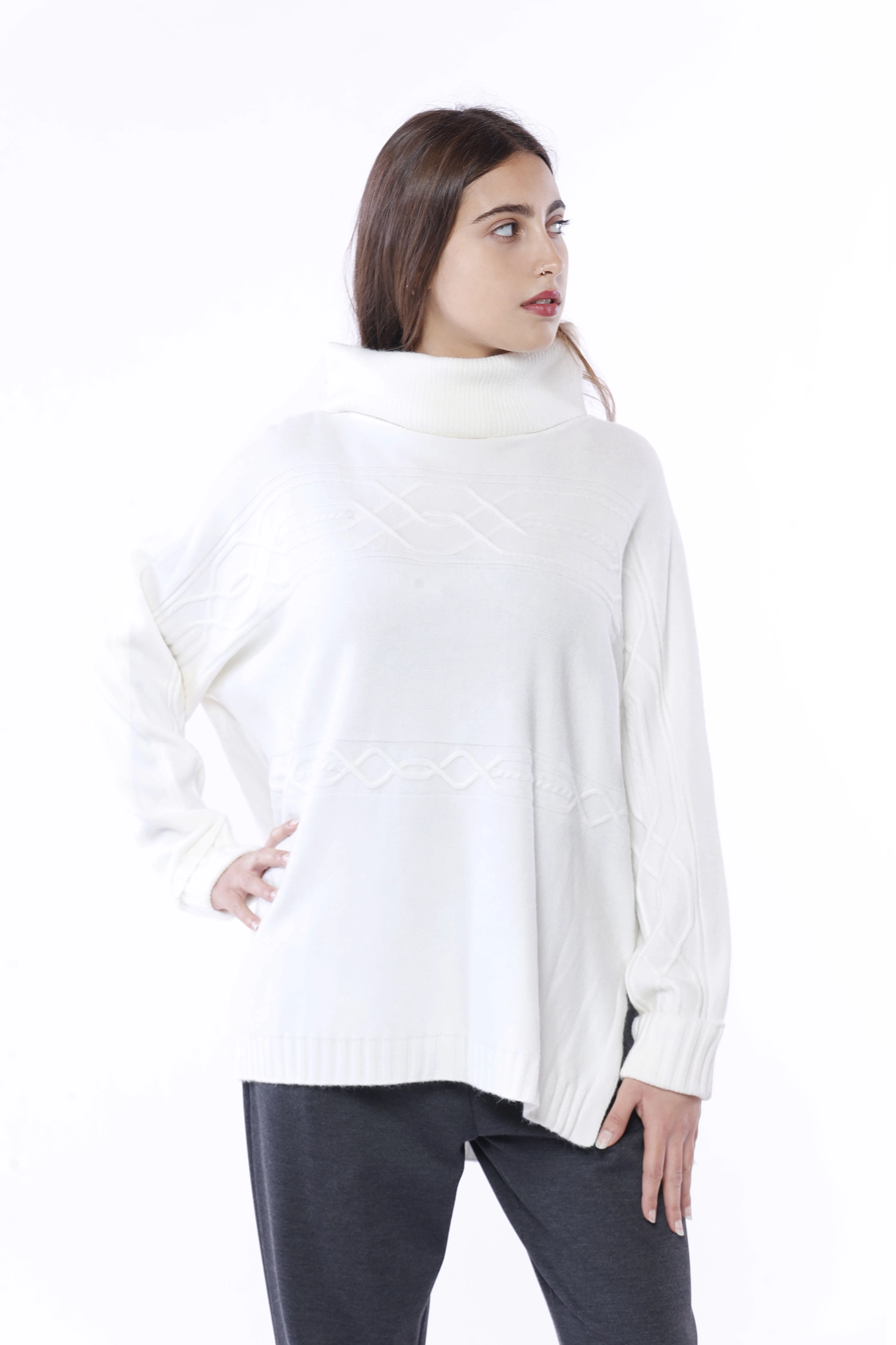 Abito in maglia a dolcevita ricamata, con spacchi laterali e orli a costine