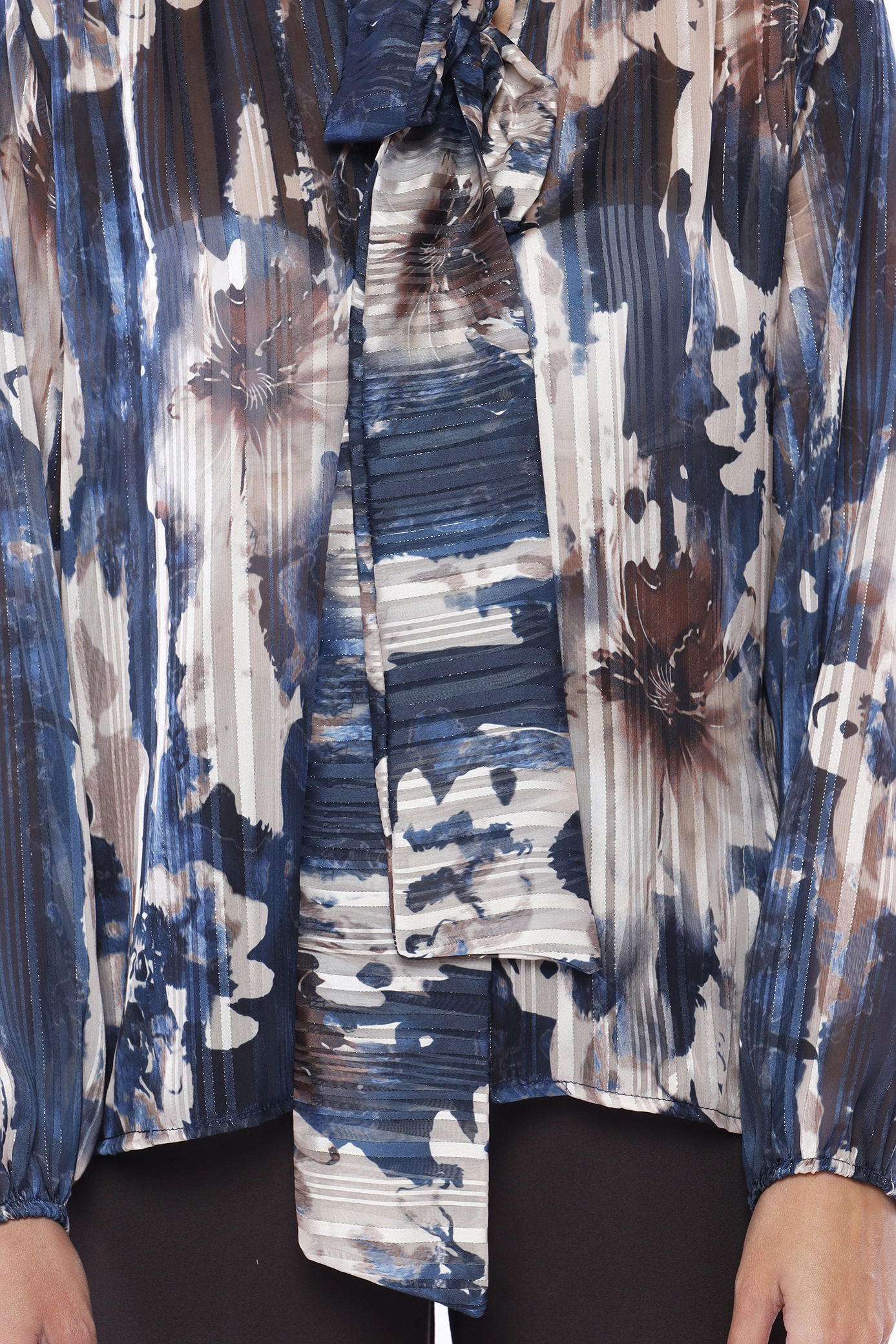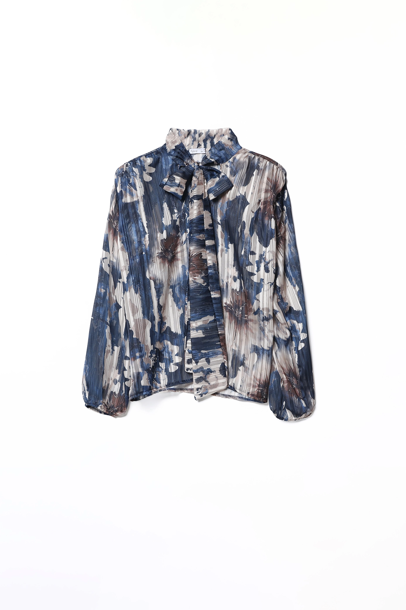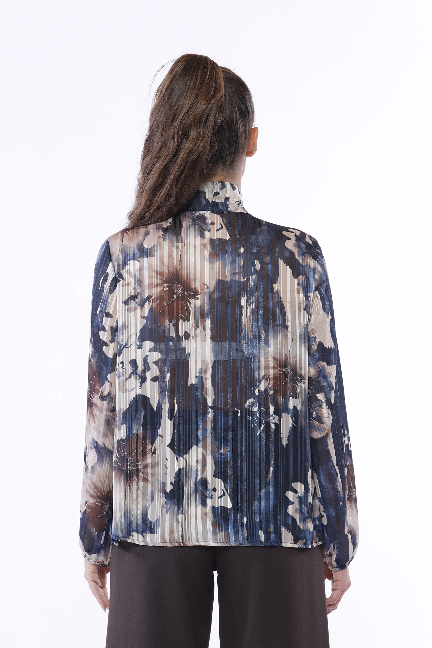tessuto in voile plissé con inserti brillanti, manica leggermente a palloncino che termina con un polsino arricciato.