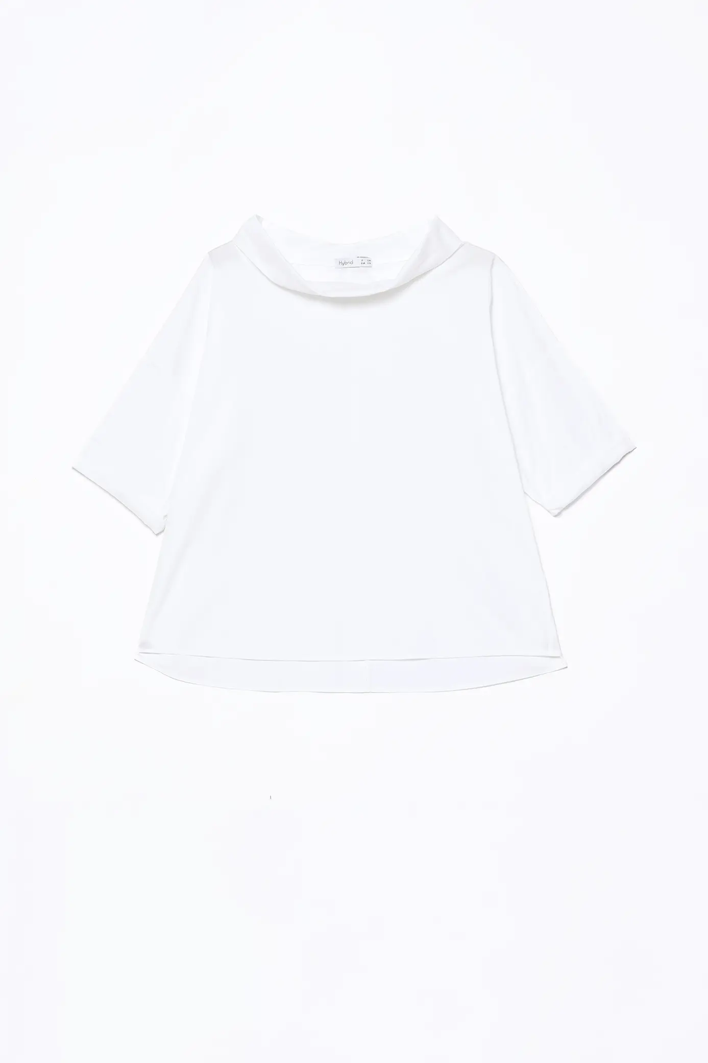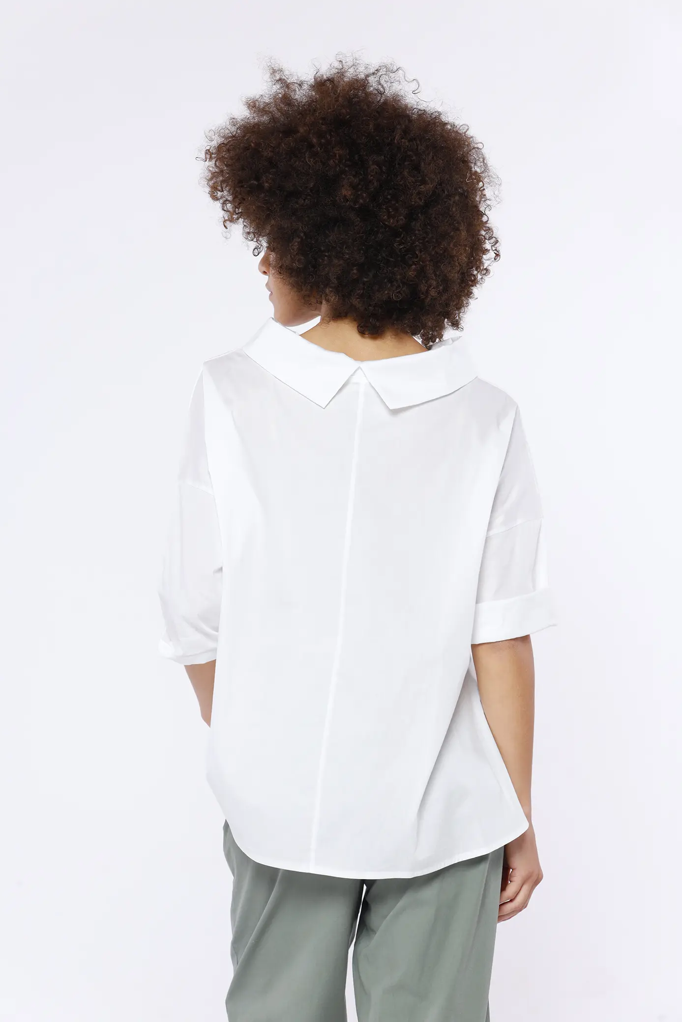 BLUSA monocolore con scollo a barca risvoltato e manica ampia
