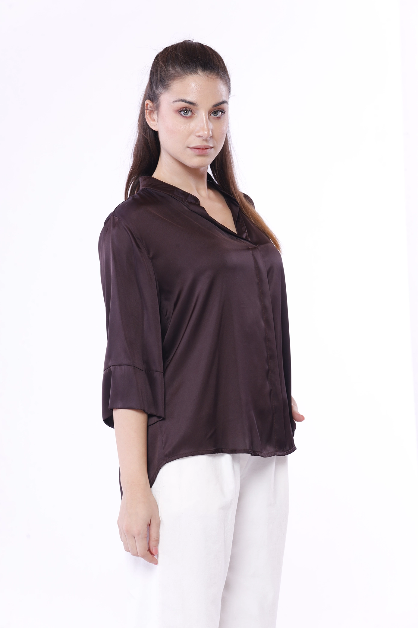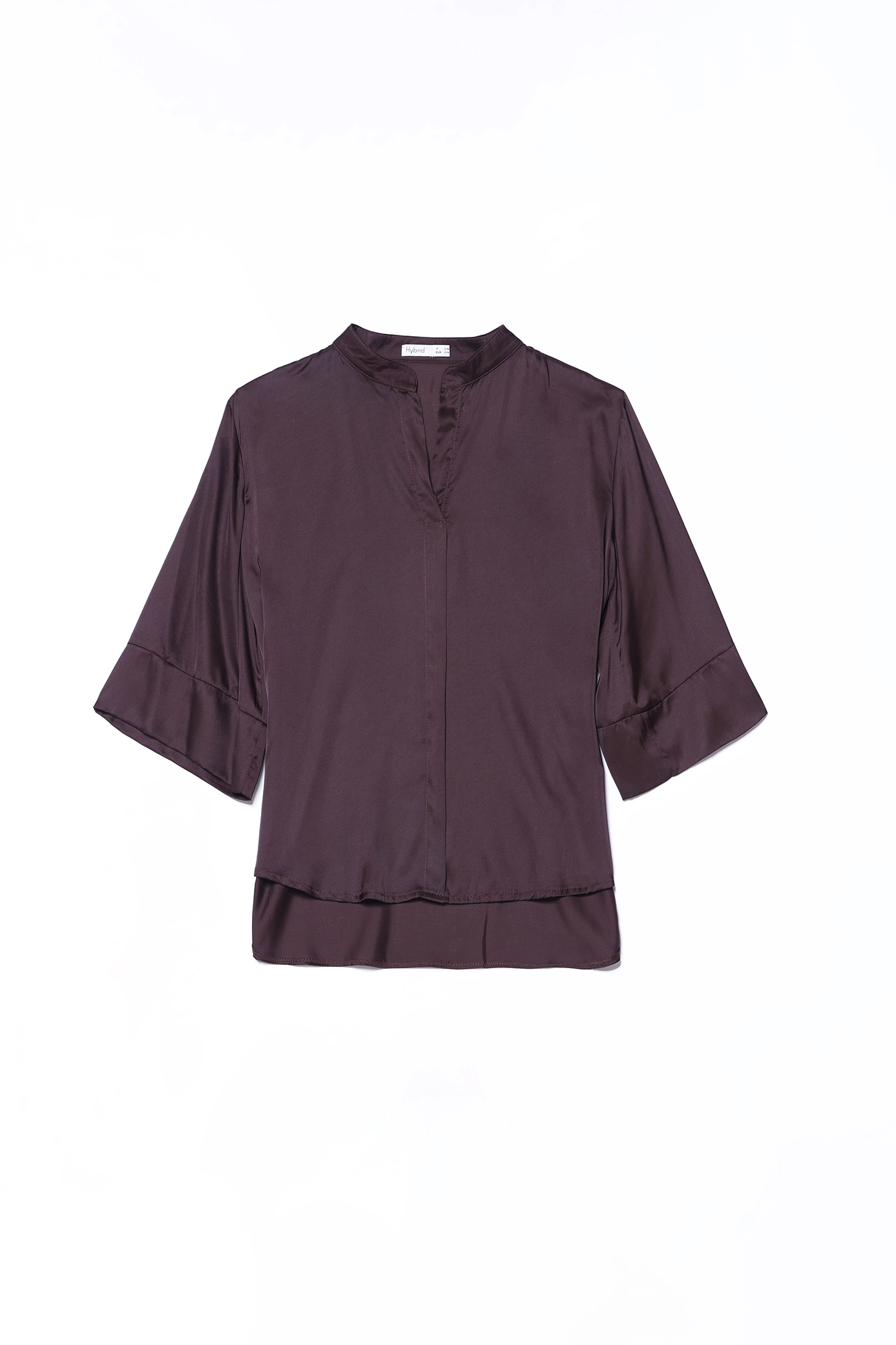 Blusa business woman con manica a kimono e colletto alla coreana aperto a V