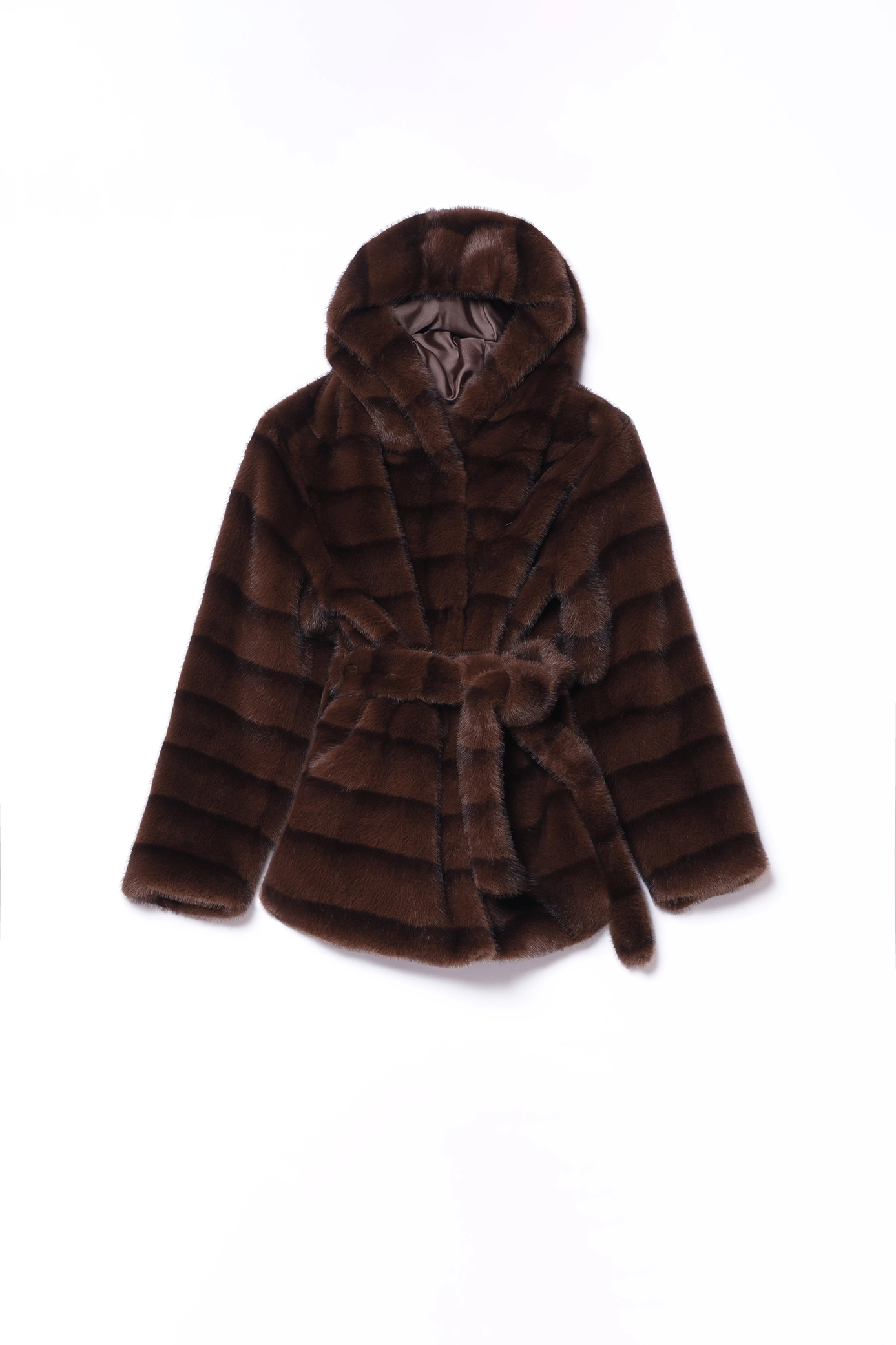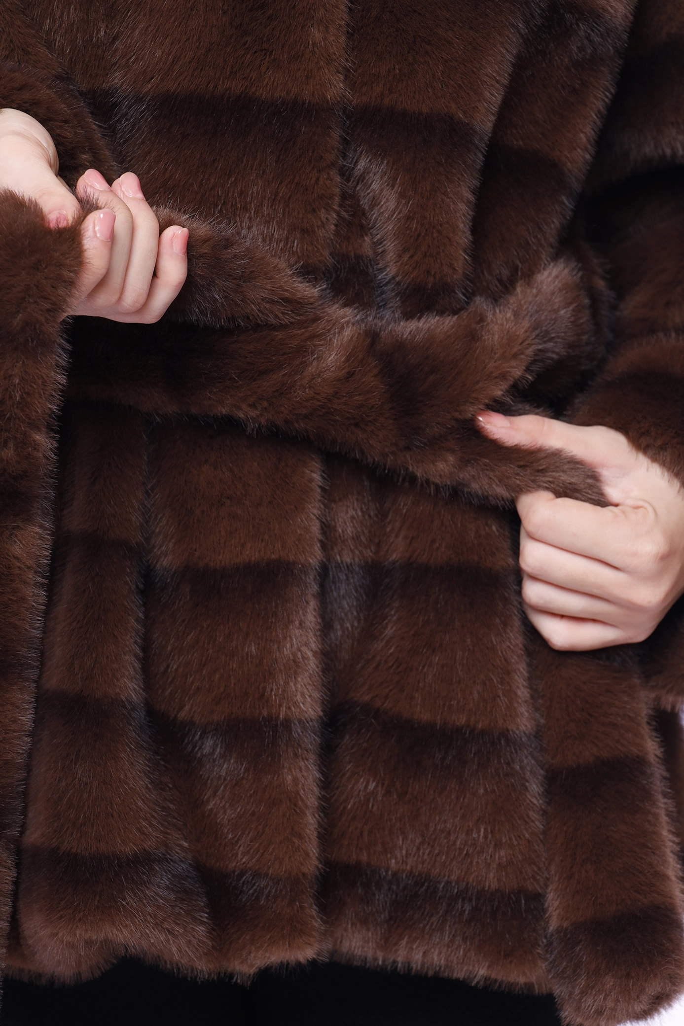 Cappotto corto con pellccia, chiusura a bottoni e cintura elegante
