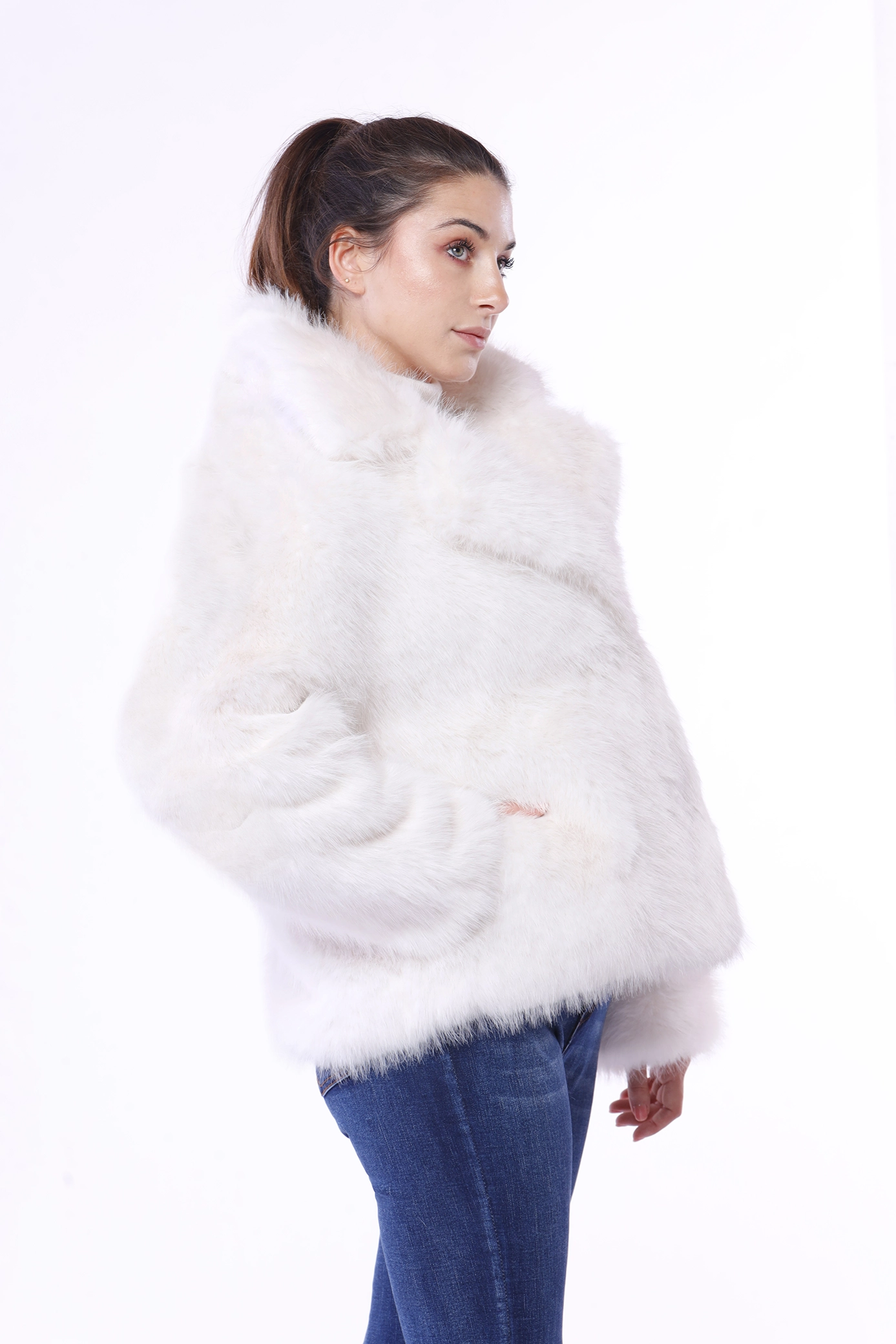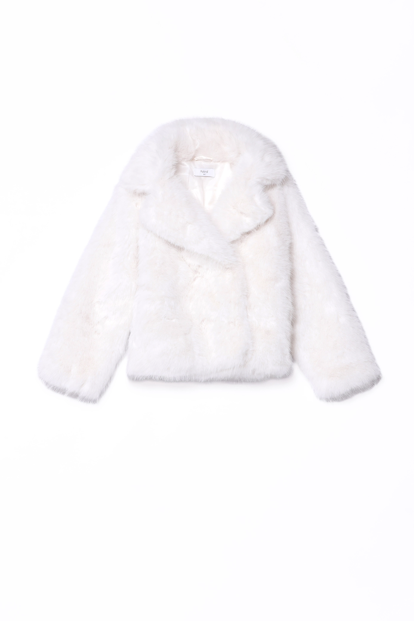 Cappottino corto doppiopetto con pelliccia, collo reverse e comode tasche