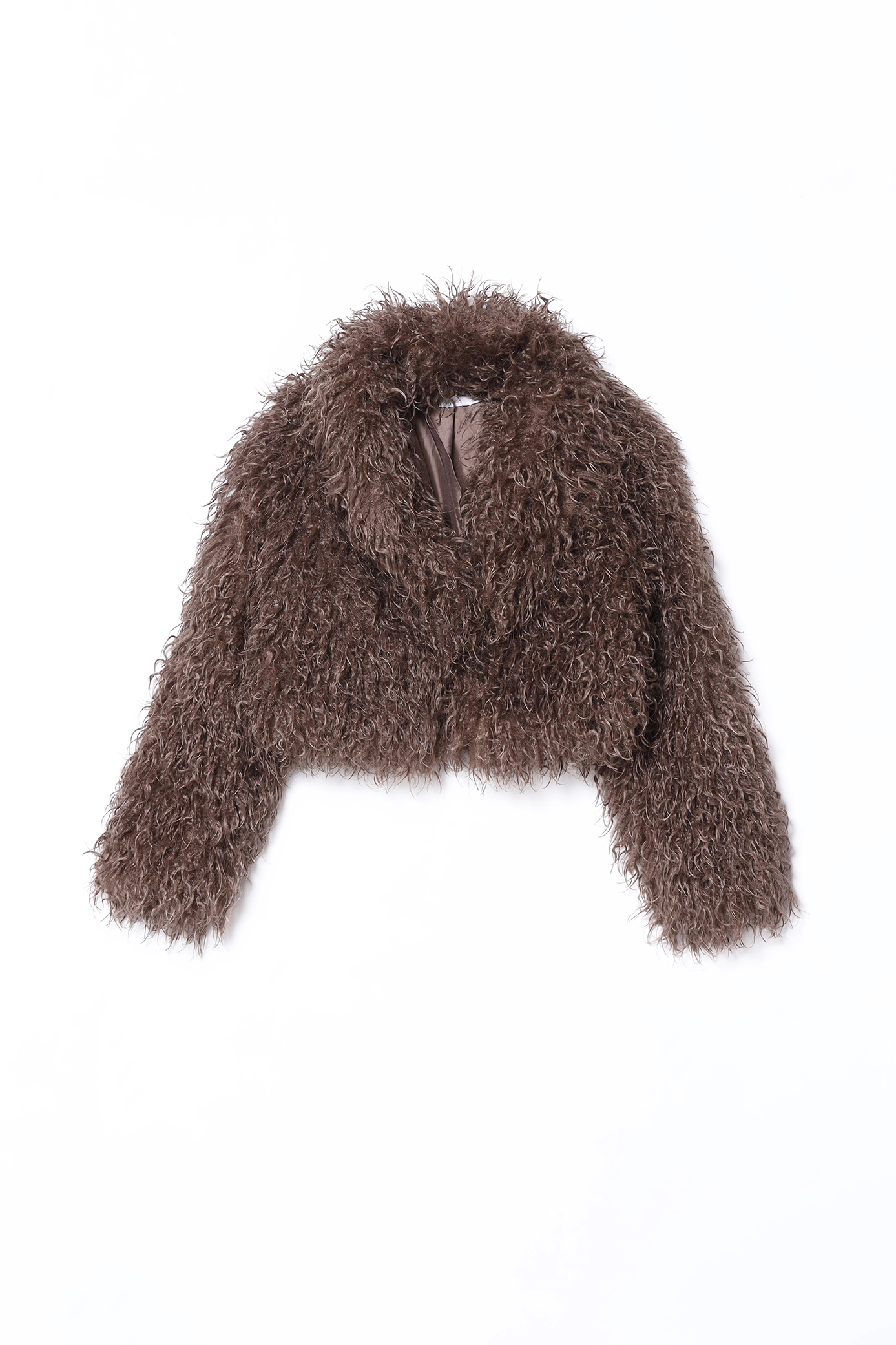 CAPPOTTO corto in pelliccia riccia con collo reverse e chiusura a occhiello