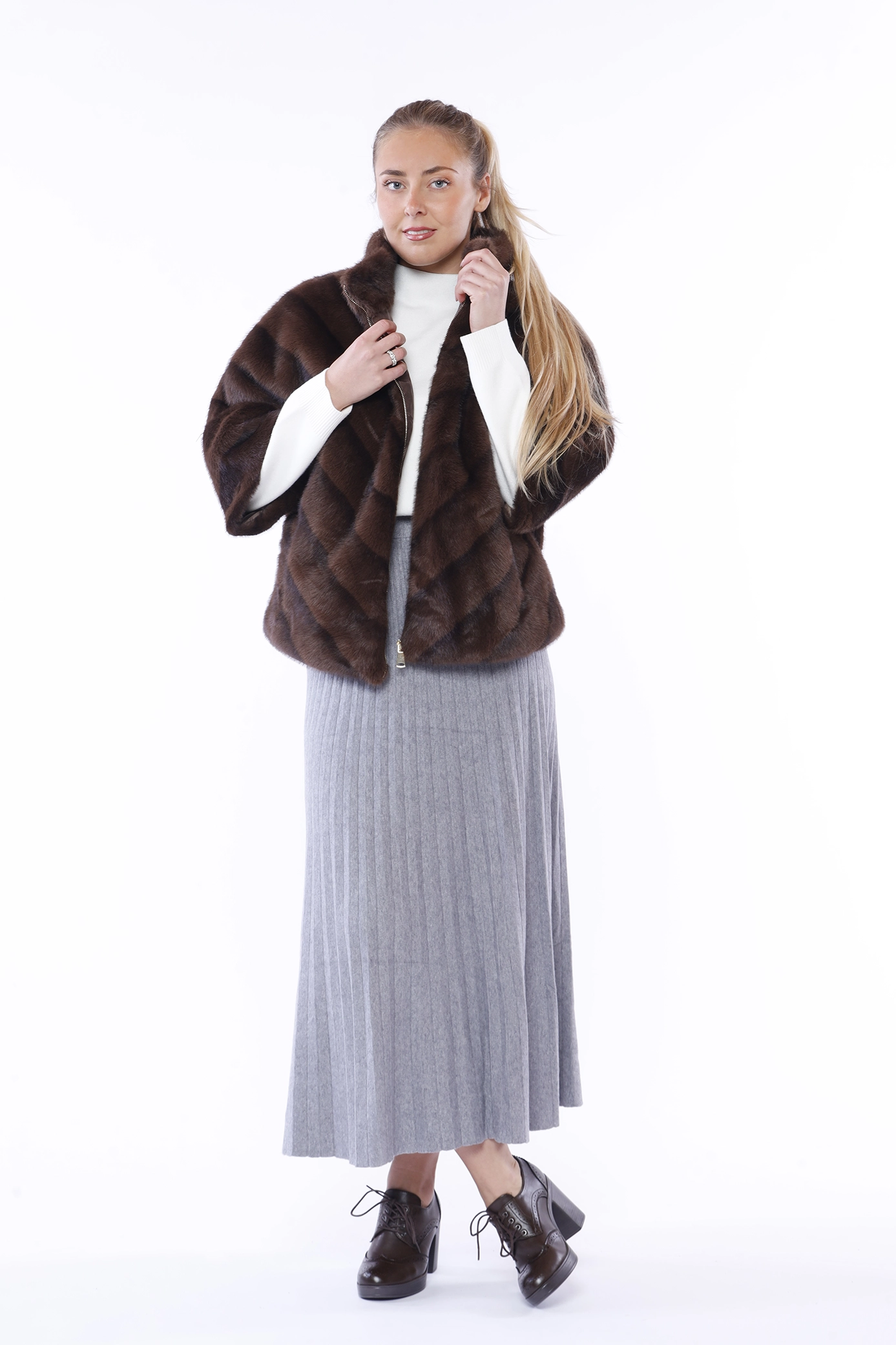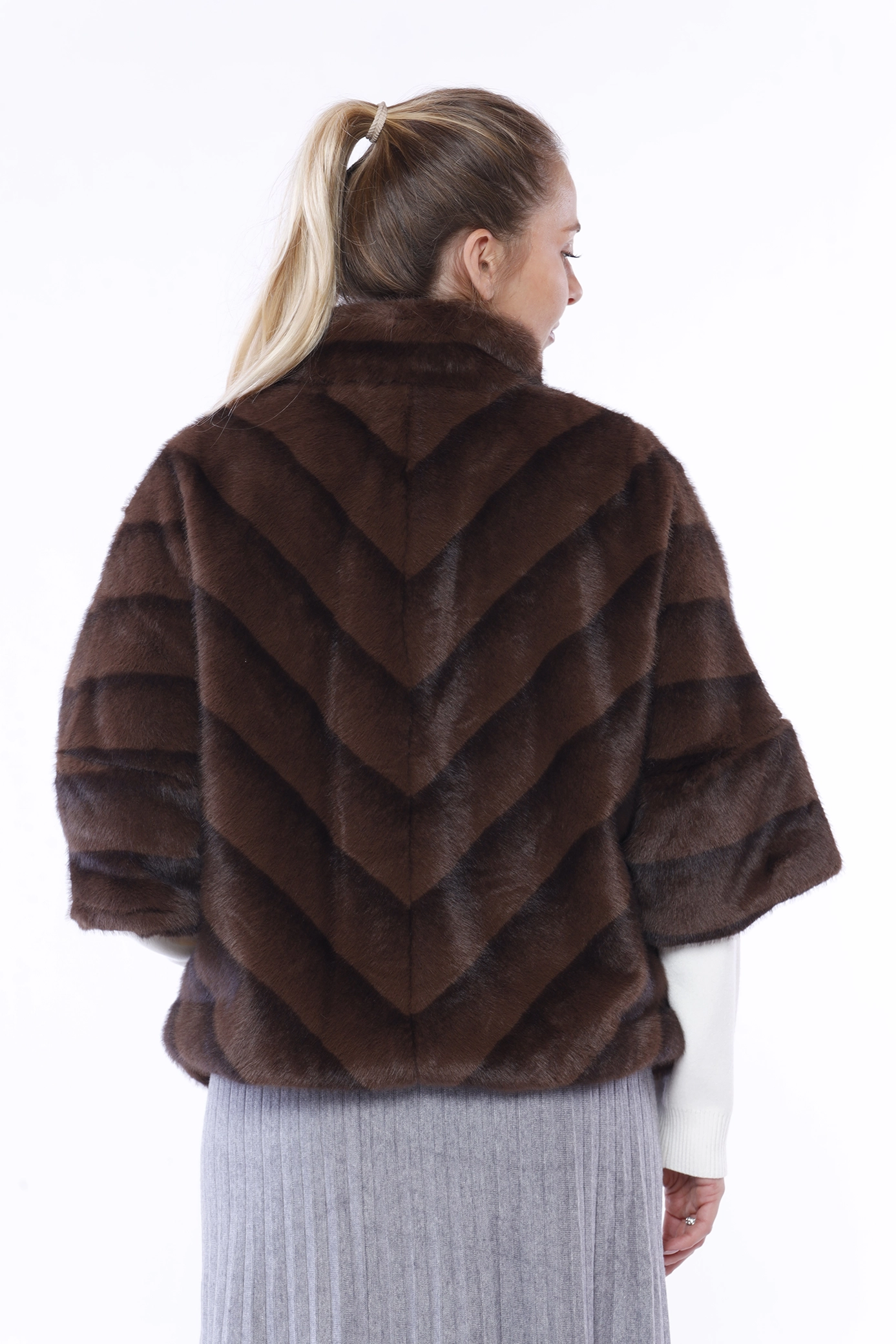 Pelliccia corta a pelo raso, con maniche ampie ed elegante trapuntatura diagonale di tendenza