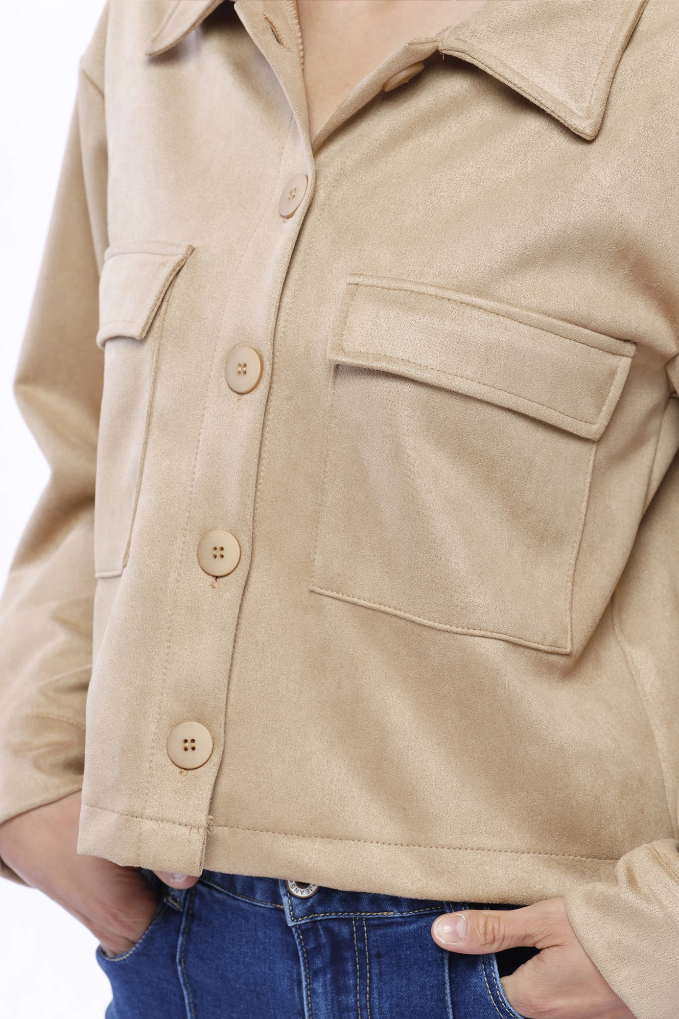 GIACCA casual corta con colletto alla francese chiusura a bottoni e tasconi di tendenza sul petto