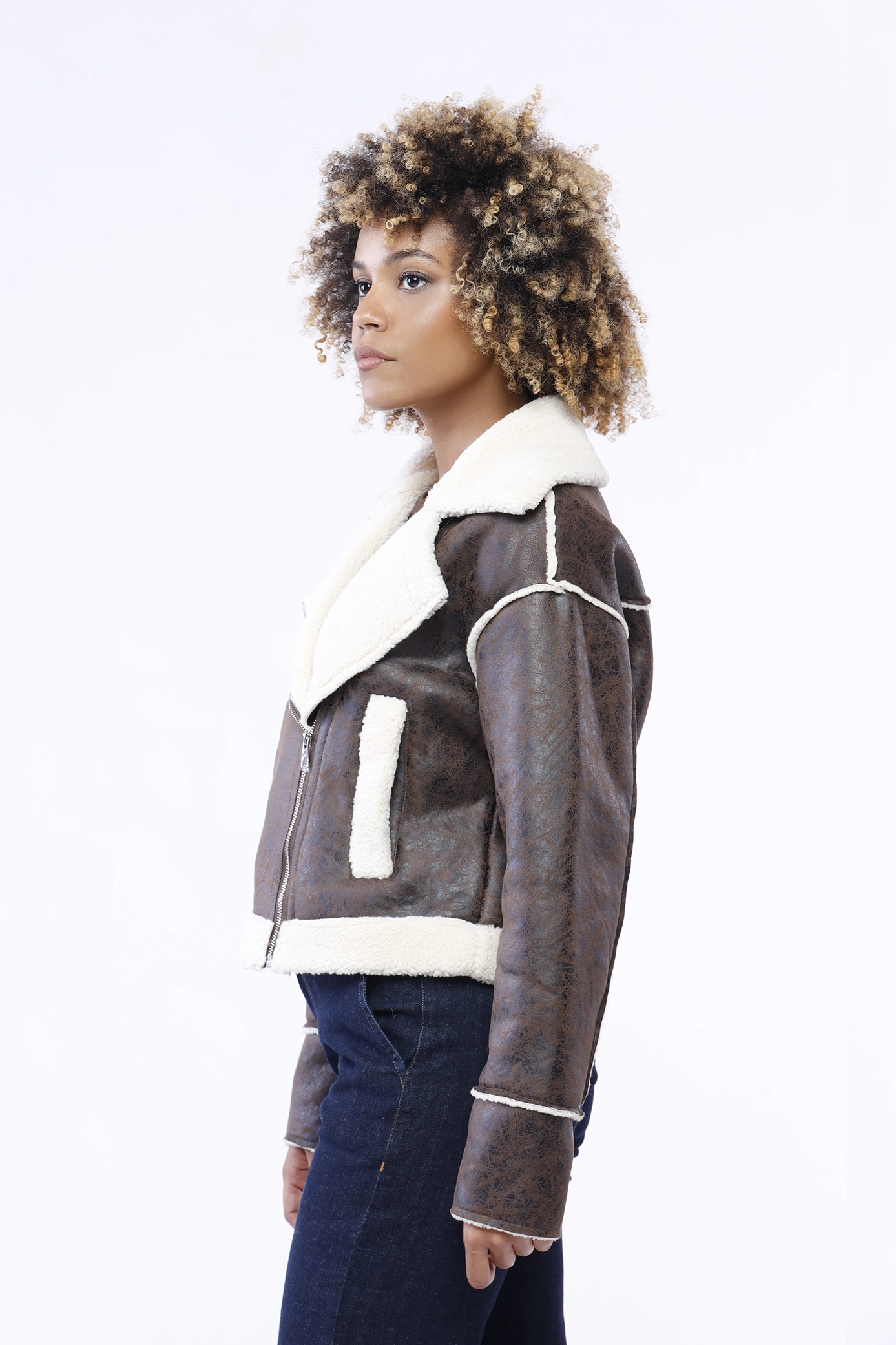 GIACCA corta con interno in teddy tasche laterali e collo reverse