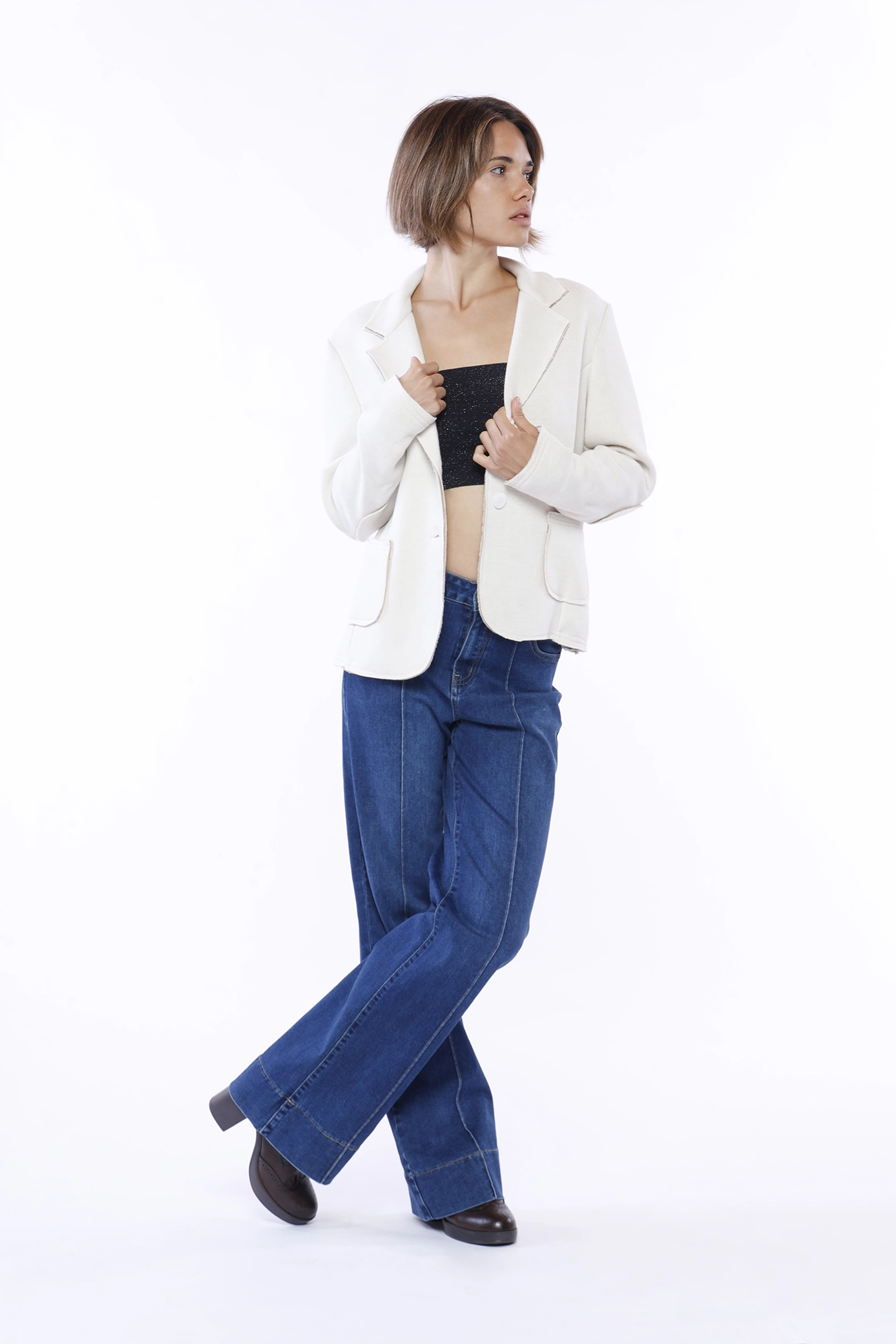 Giacca corta monopetto, con collo reverse, sagomata e taschine applicate