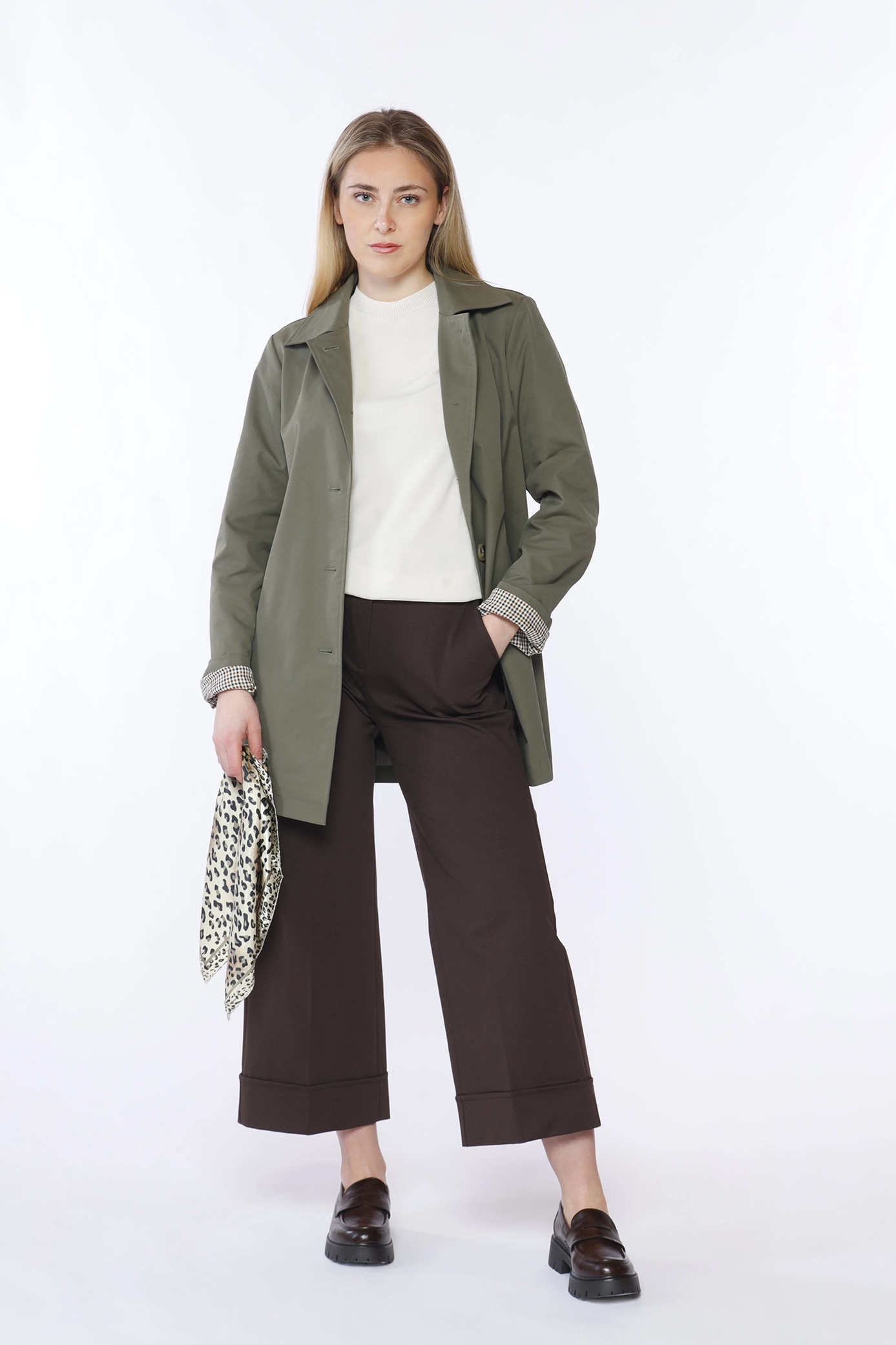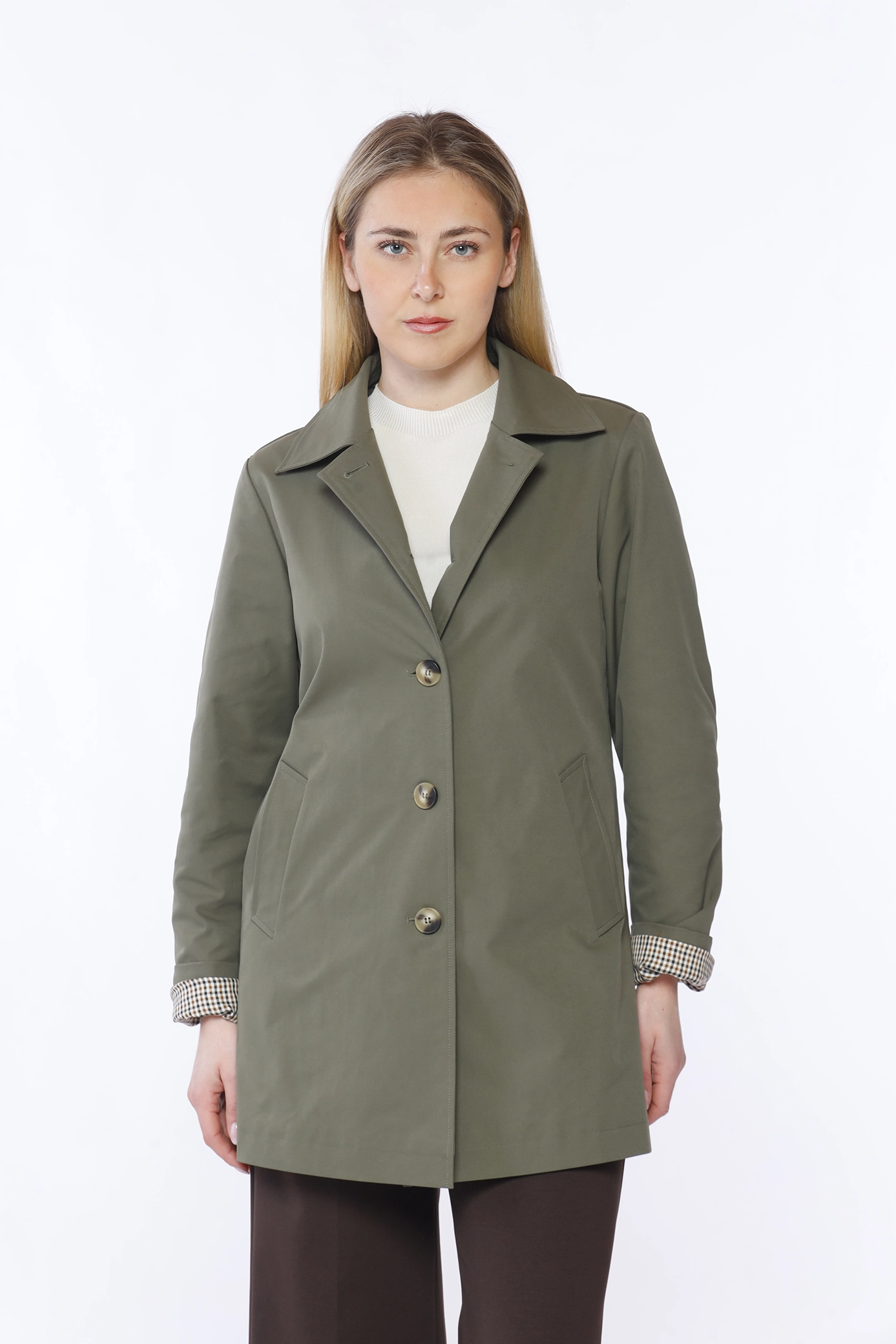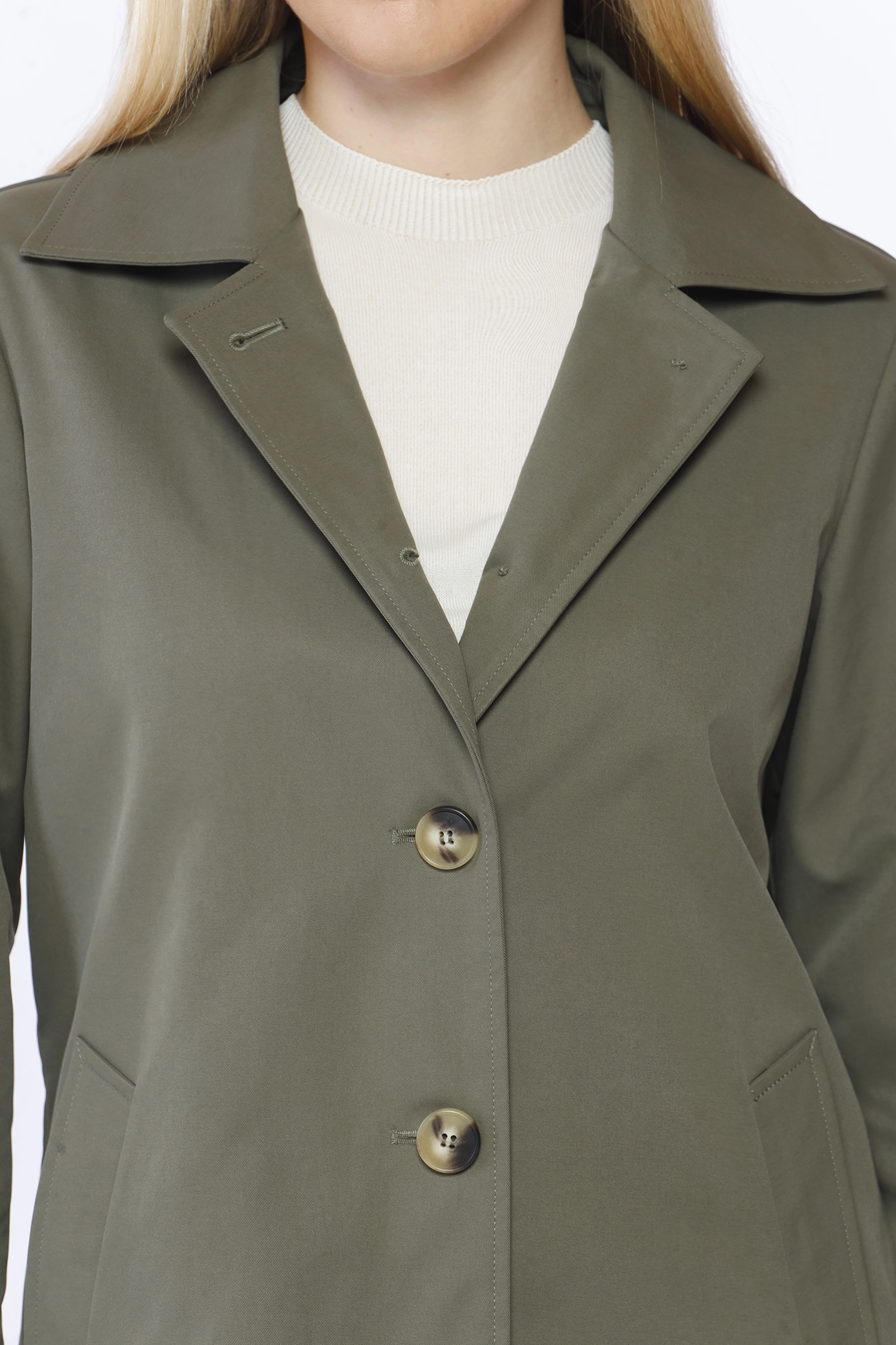 Trench midi con fodera e tasche diagonali, chiusura a bottoni e collo revers