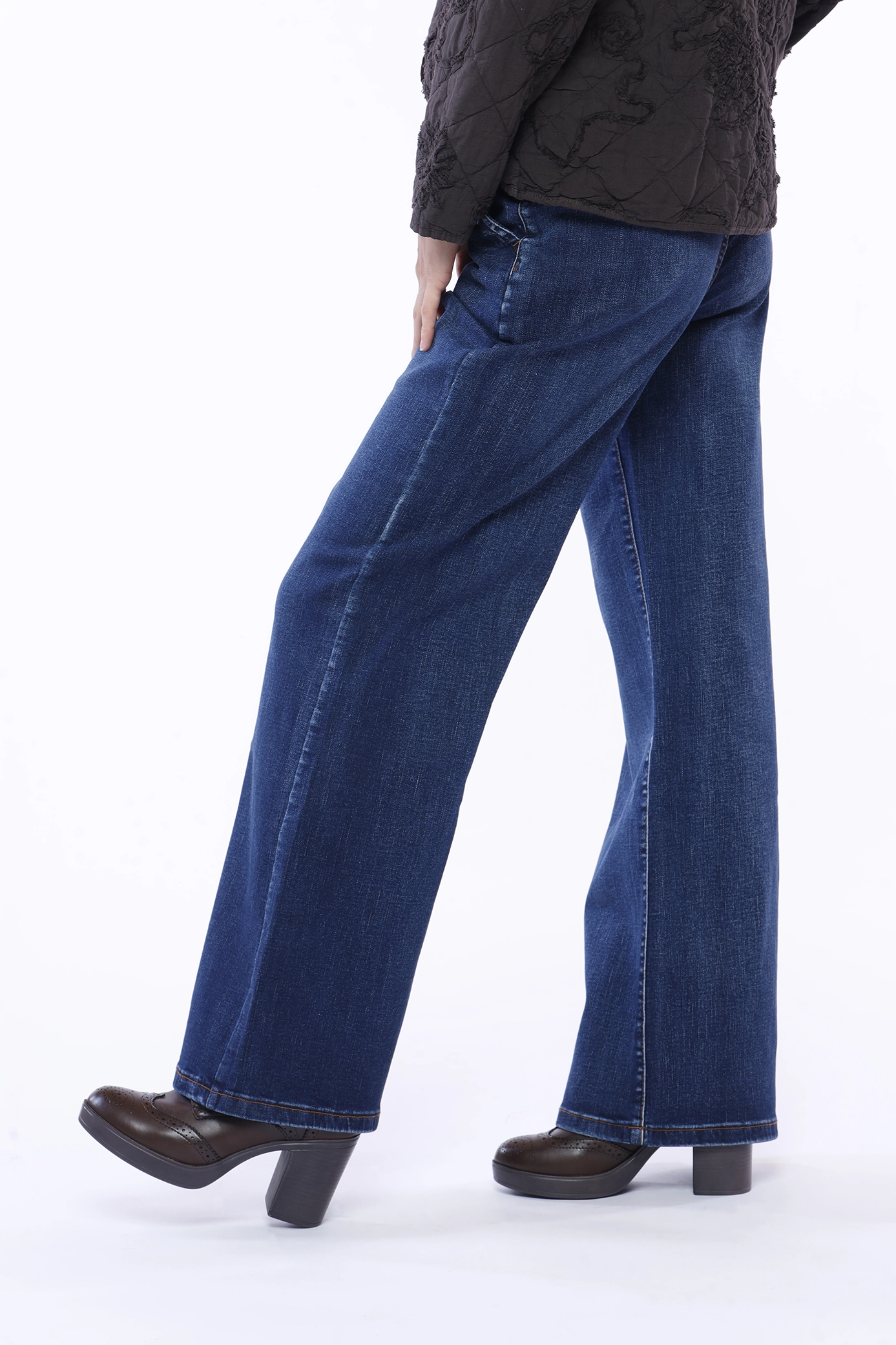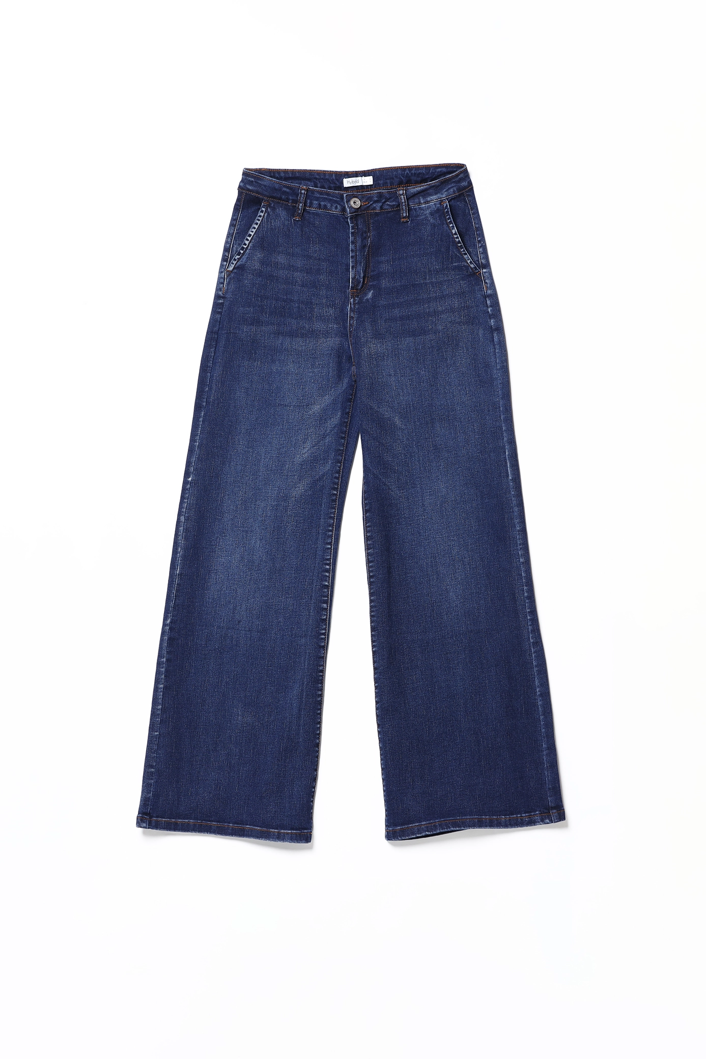 Jeans a zampa di elefante lavaggio medio, con chiusura a bottone e comode tasche