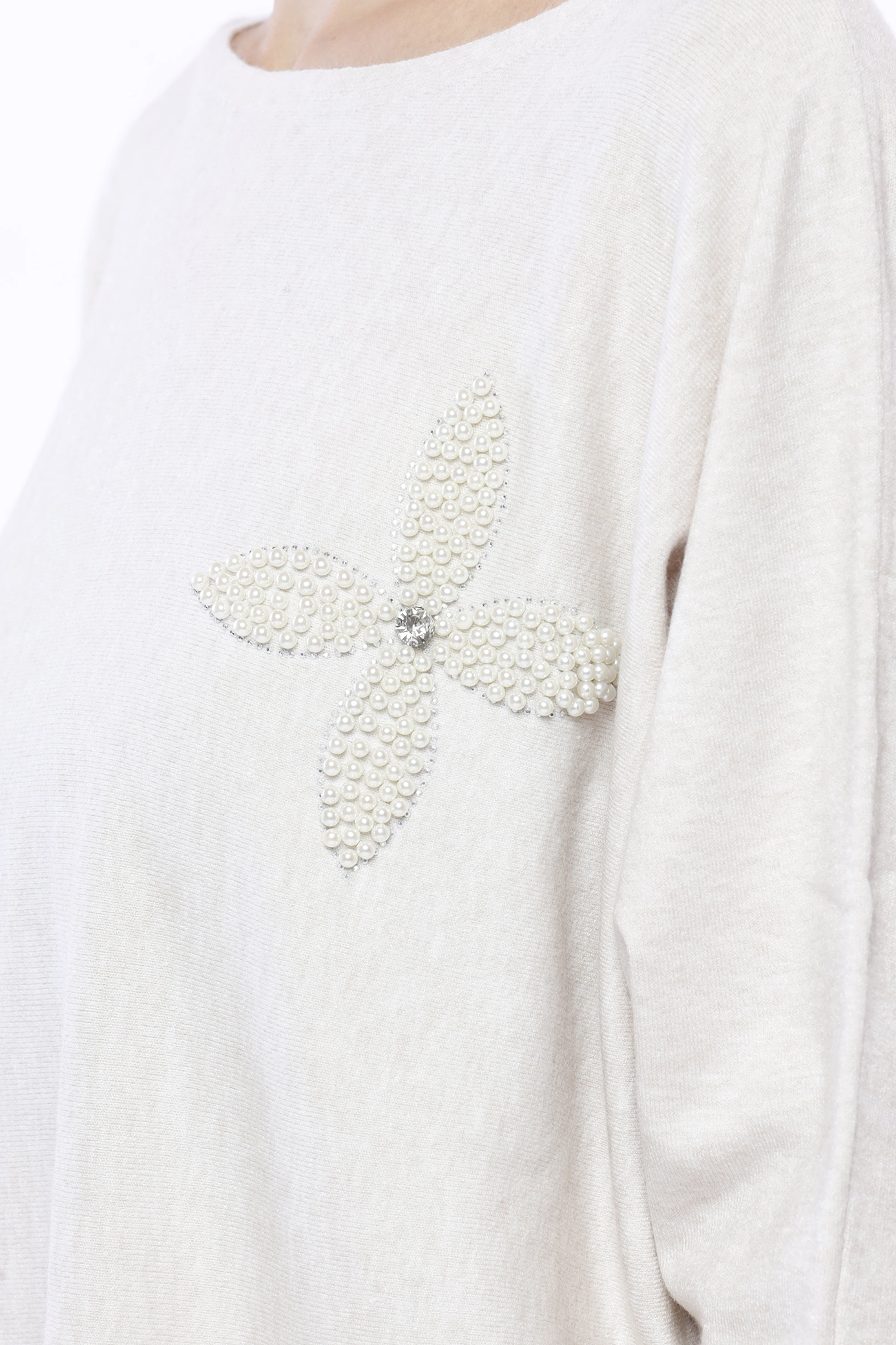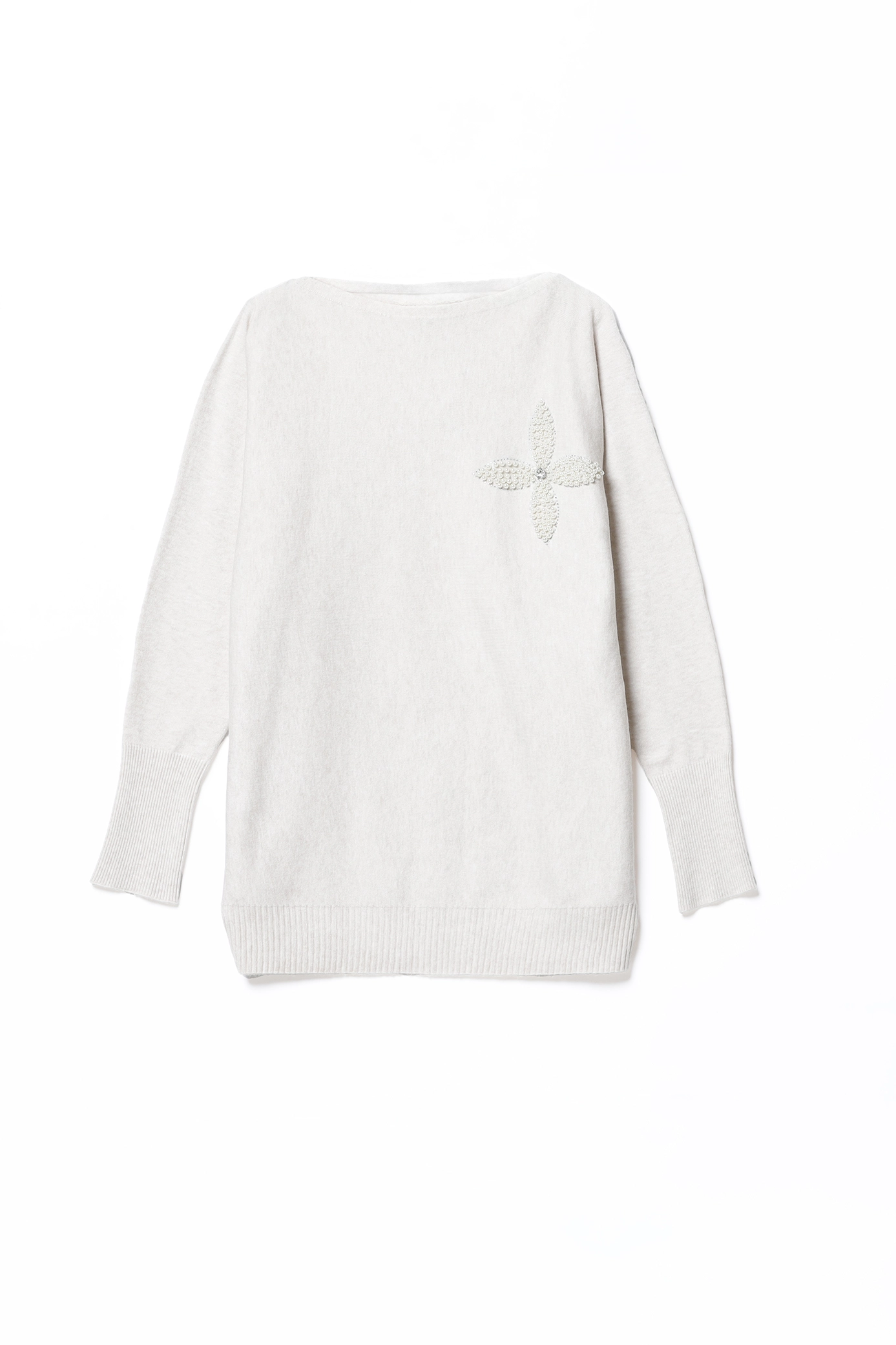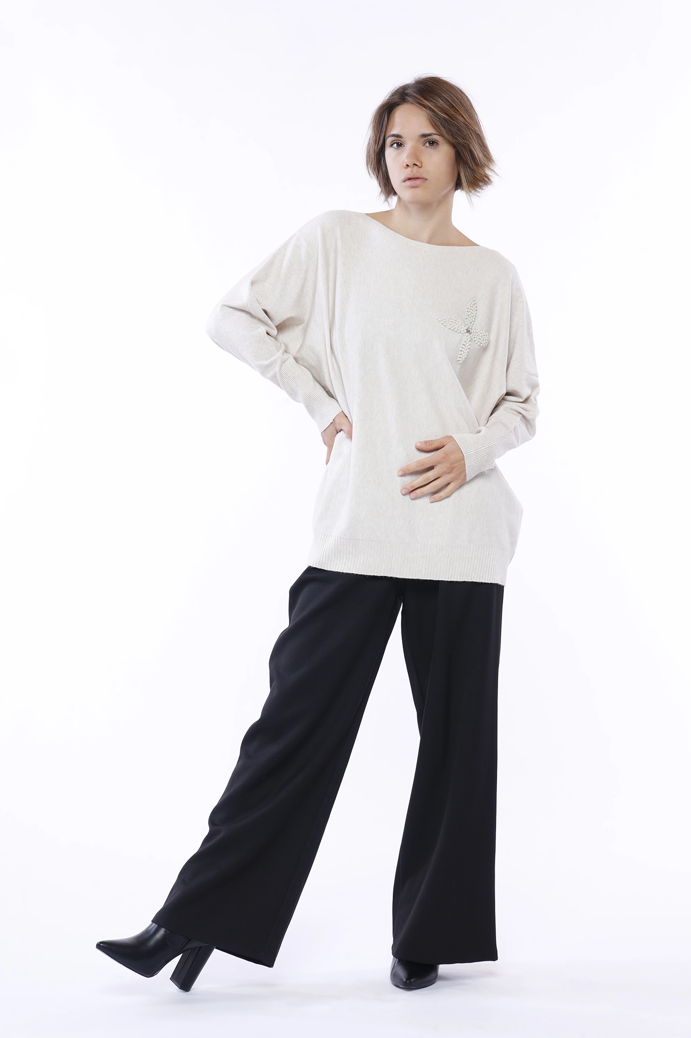 Maglia casual a girocollo, con grazioso ricamo sul petto e orli a costine