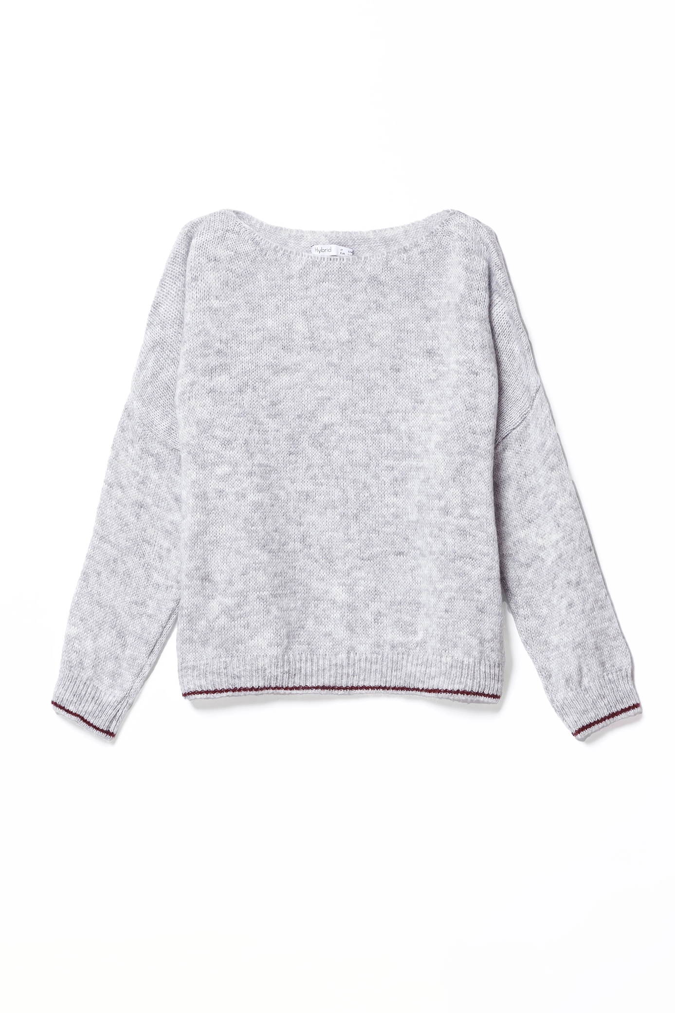 Maglia ampia e versatile, con dettaglio orli a contrasto e scollo a barca