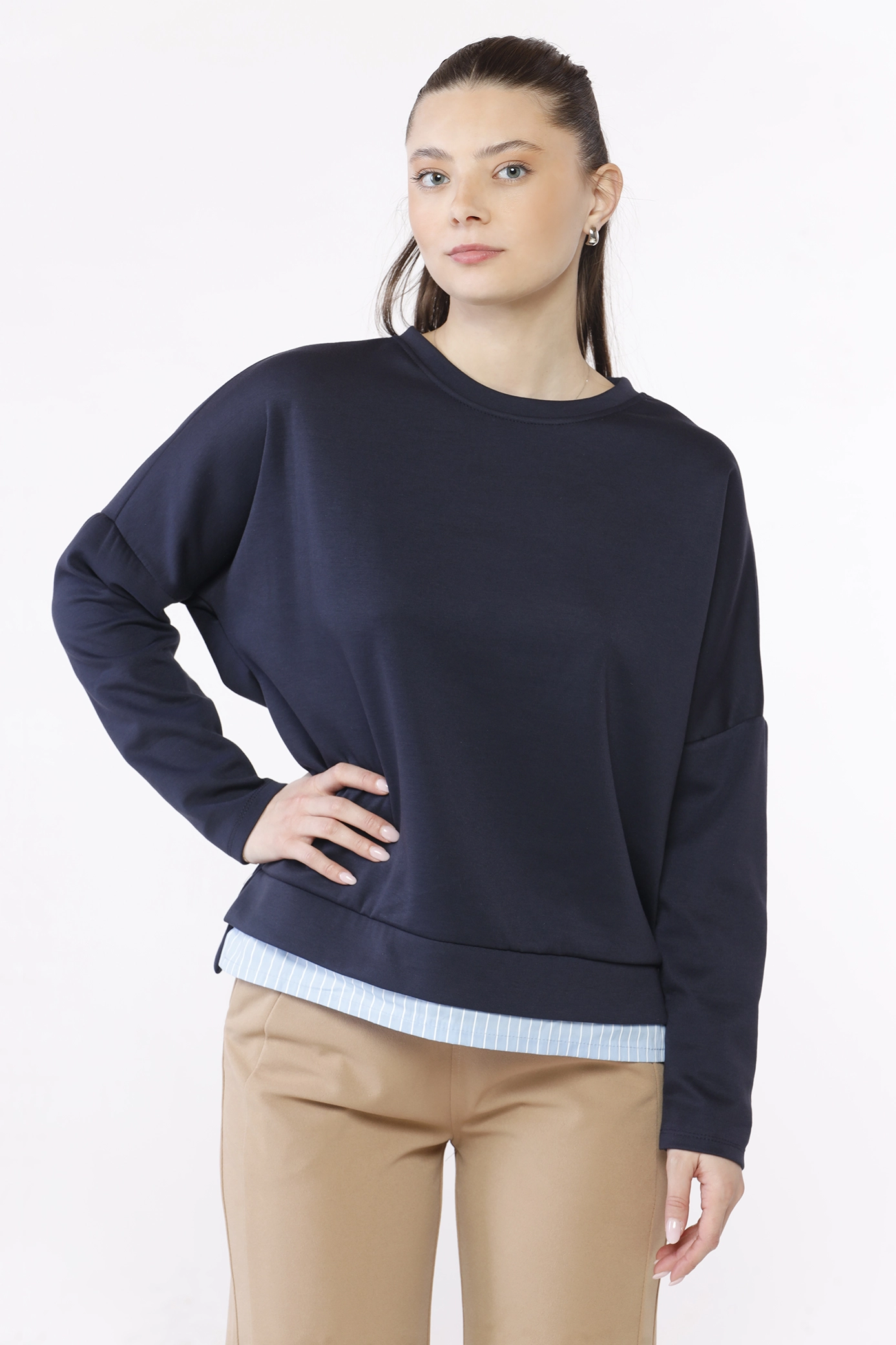 Maglia casual, con inserto rigato al fondo e spaccetti laterali