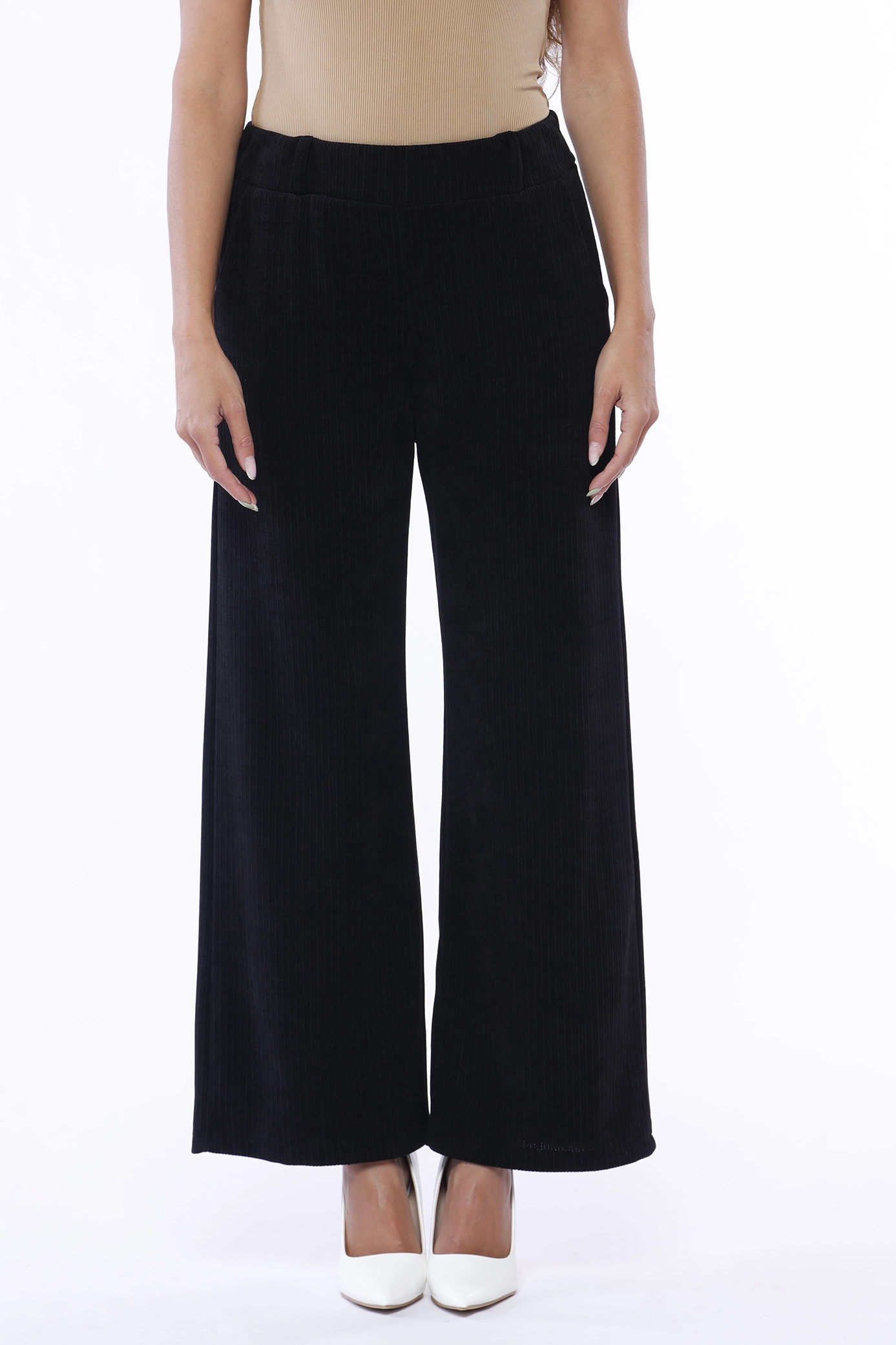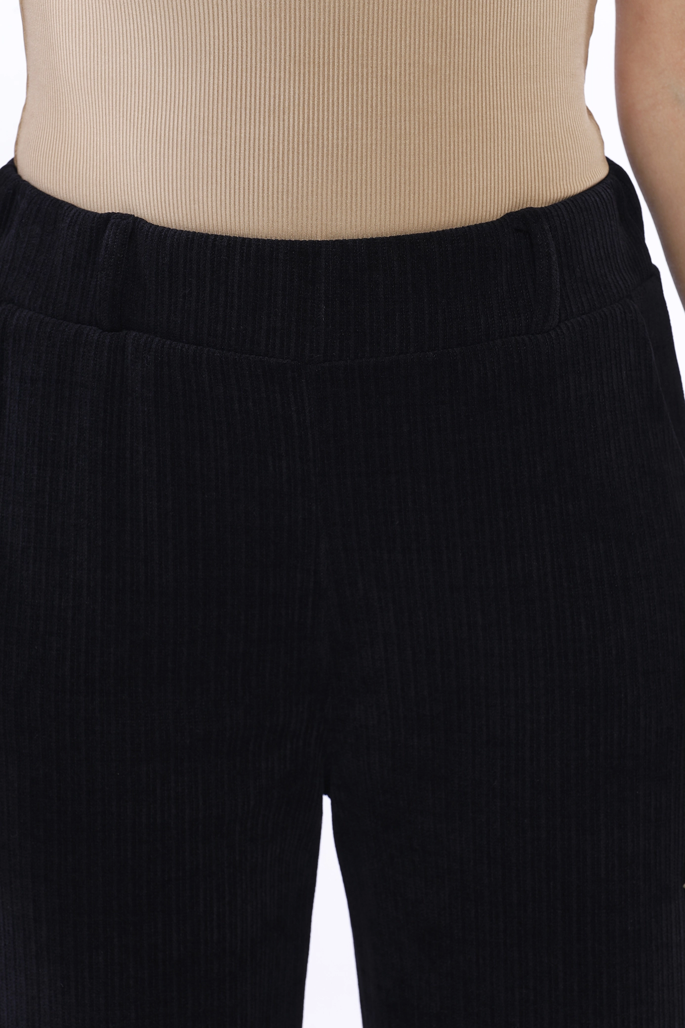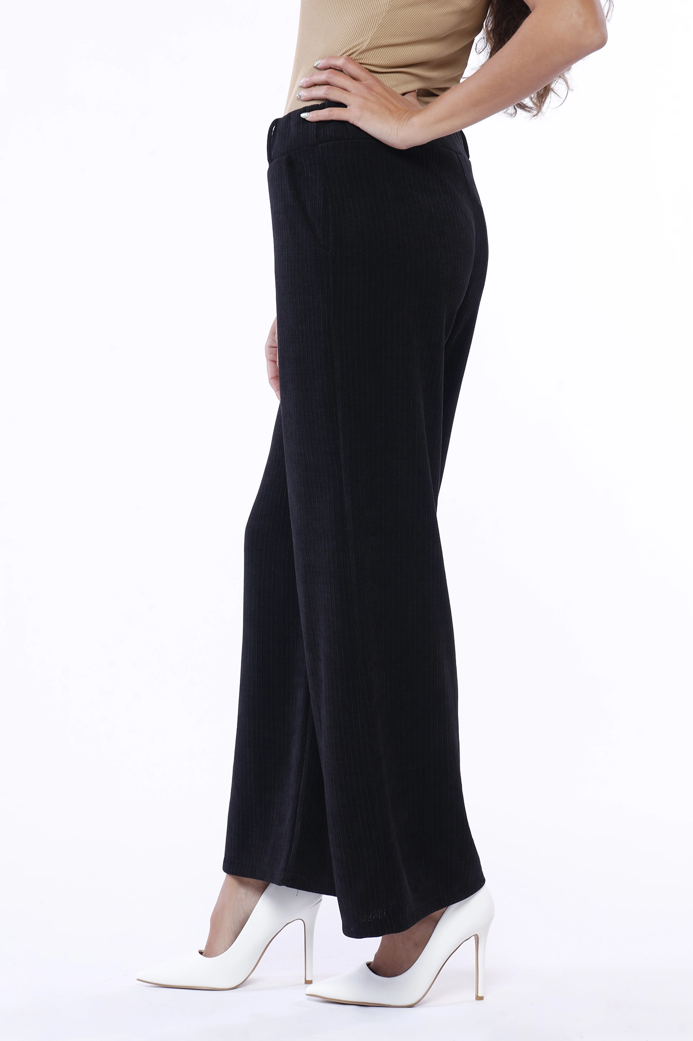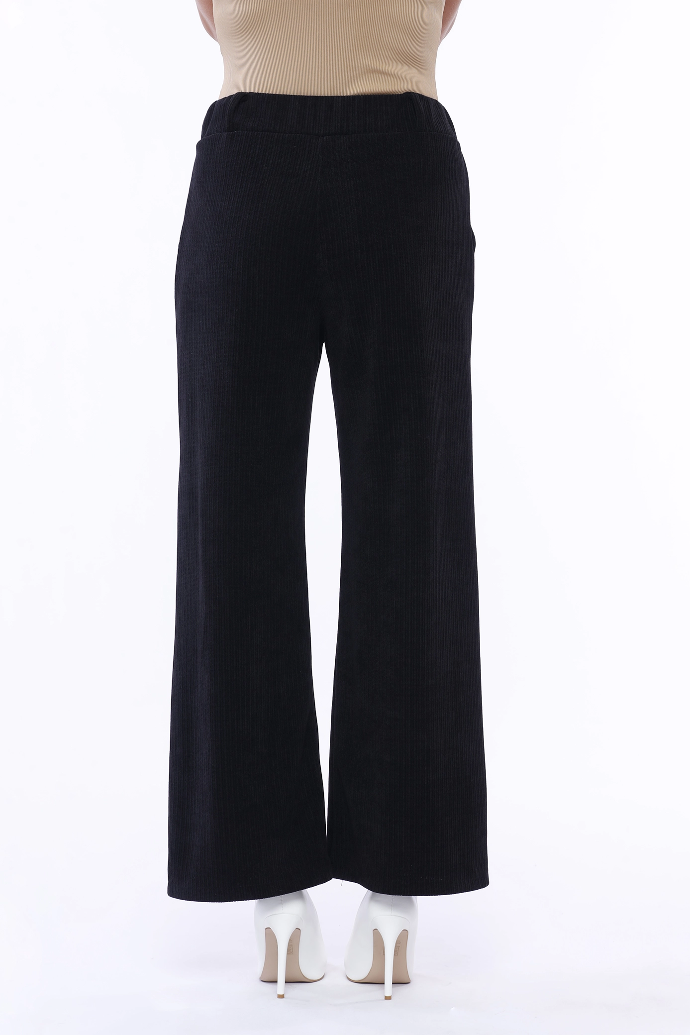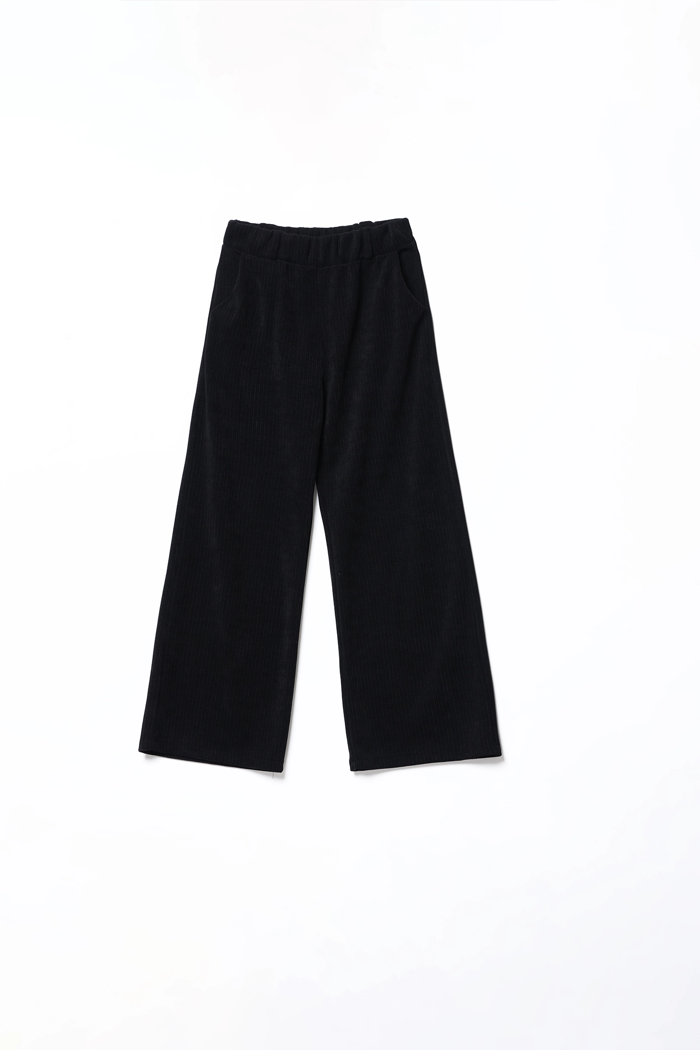 Pantalone wide leg con trama a costine, comodo elastico di chiusura in vita e tasche laterali