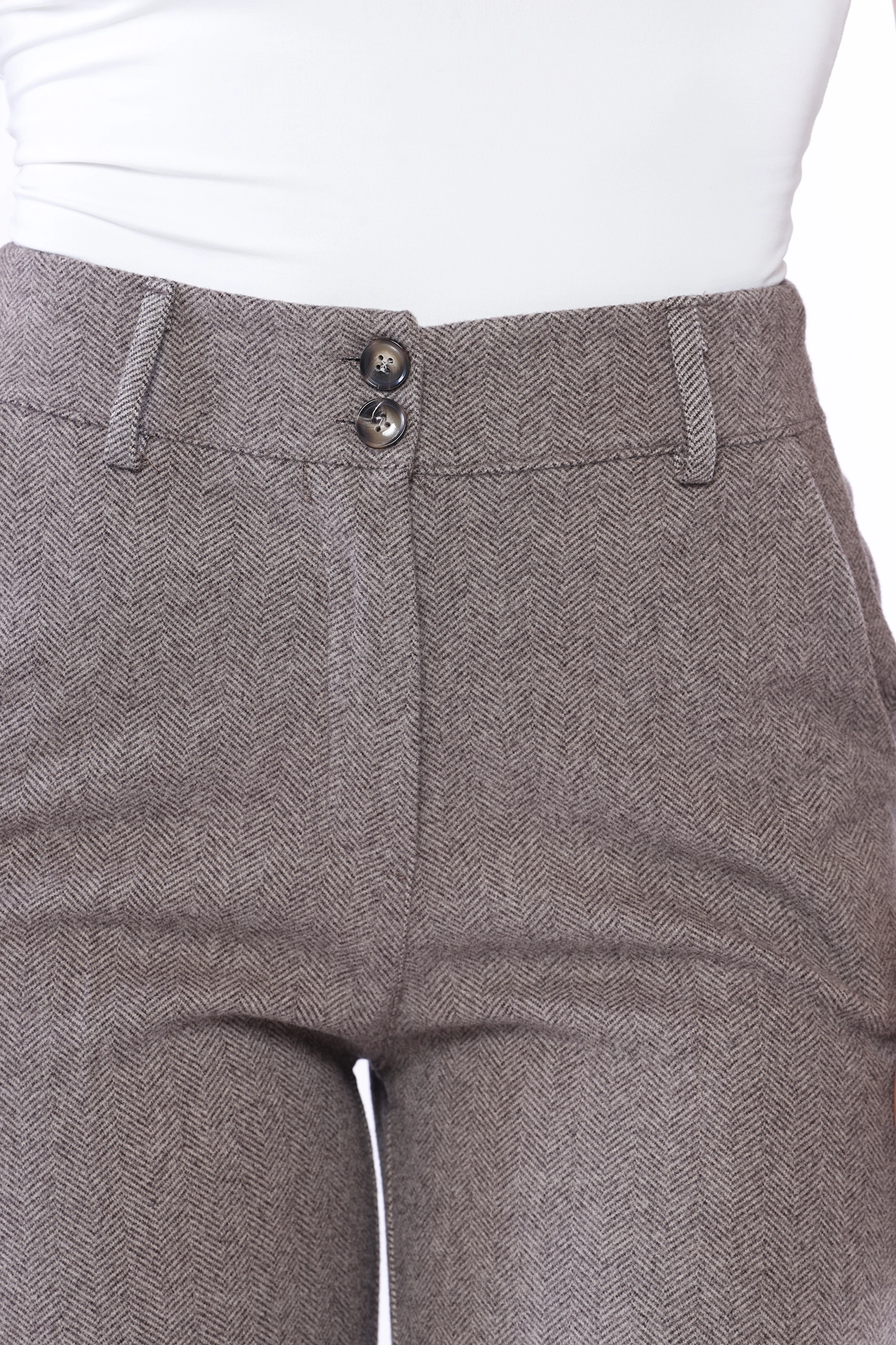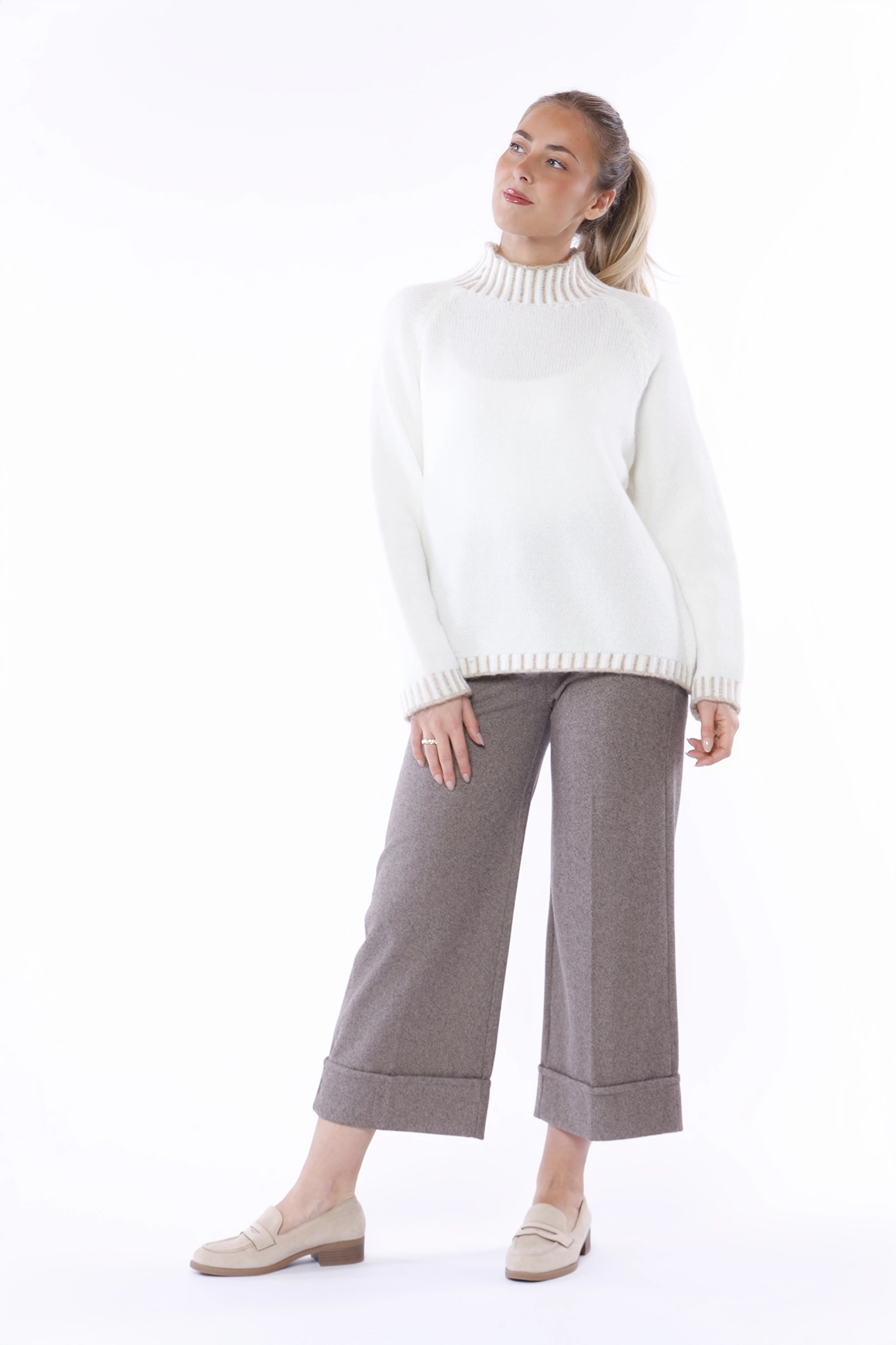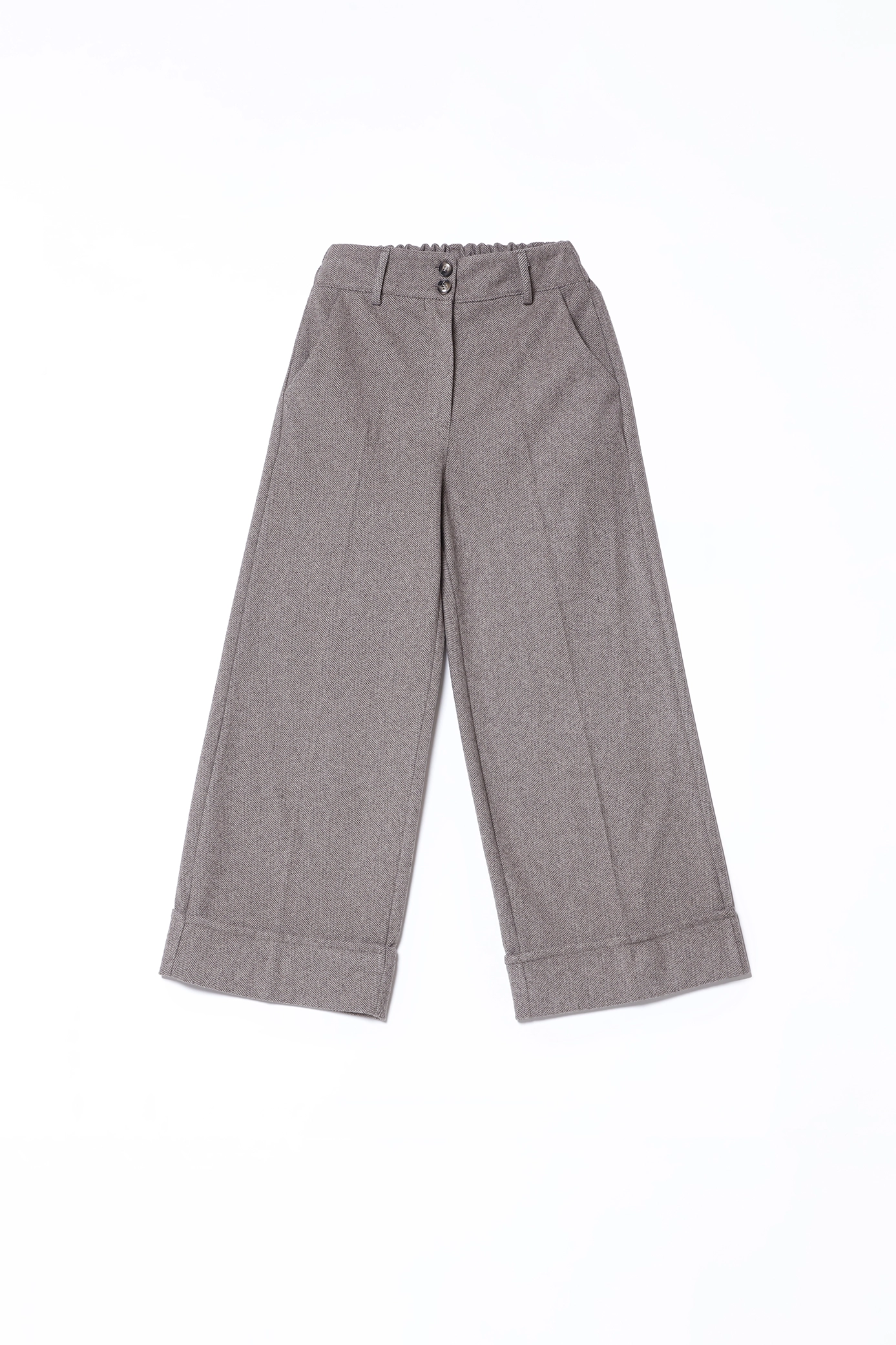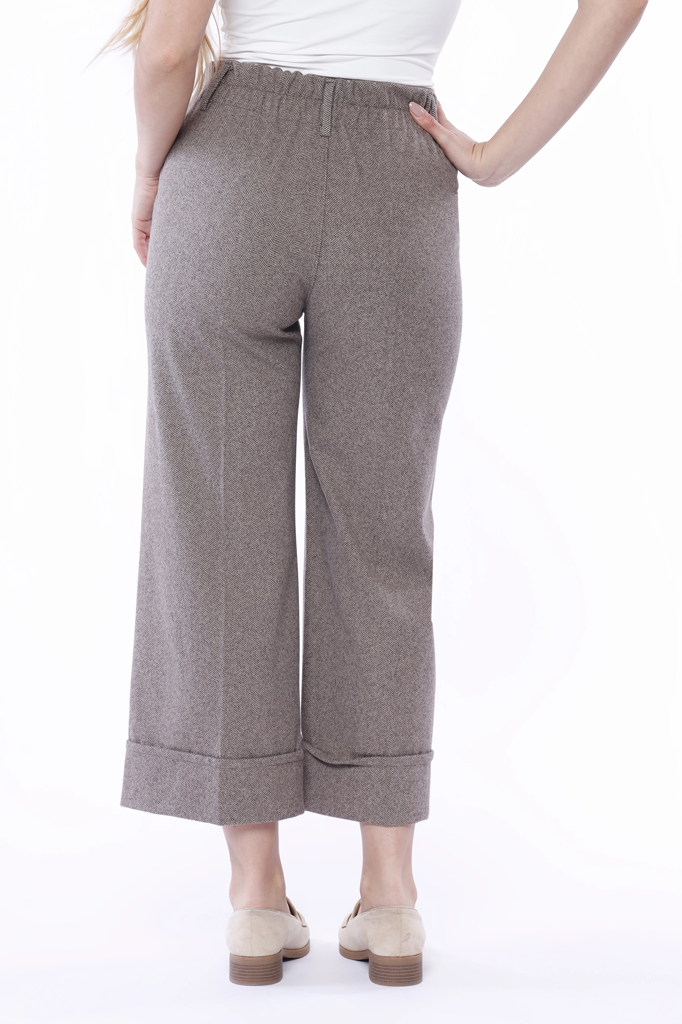 Pantalone a palazzo con risvolto moderno alto alle caviglie, doppio bottone in vita e passanti alla cintura