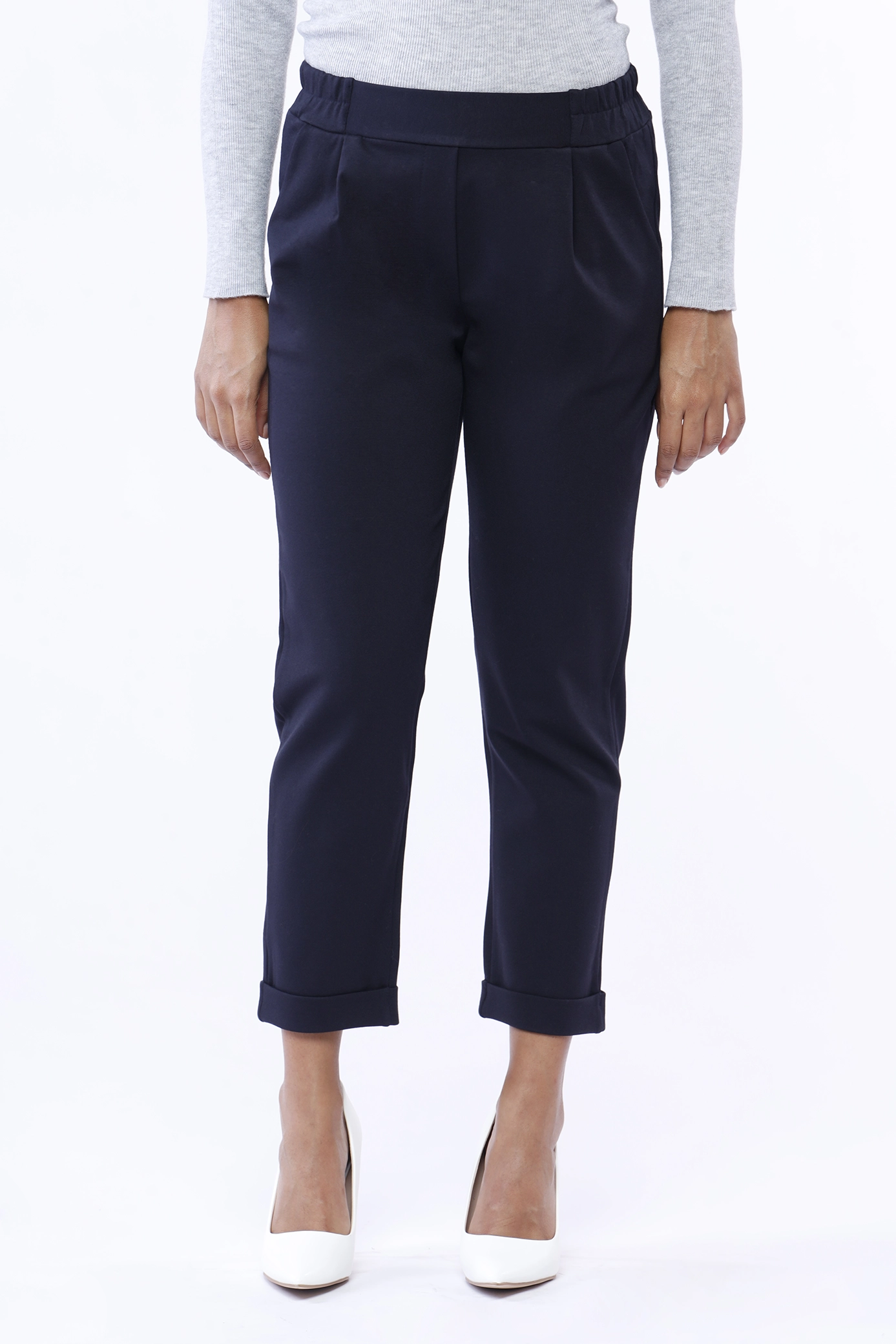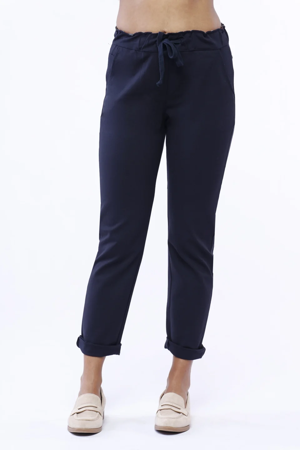 PANTALONE in punto milano con risvolti alle caviglie e comodo elastico di chiusura