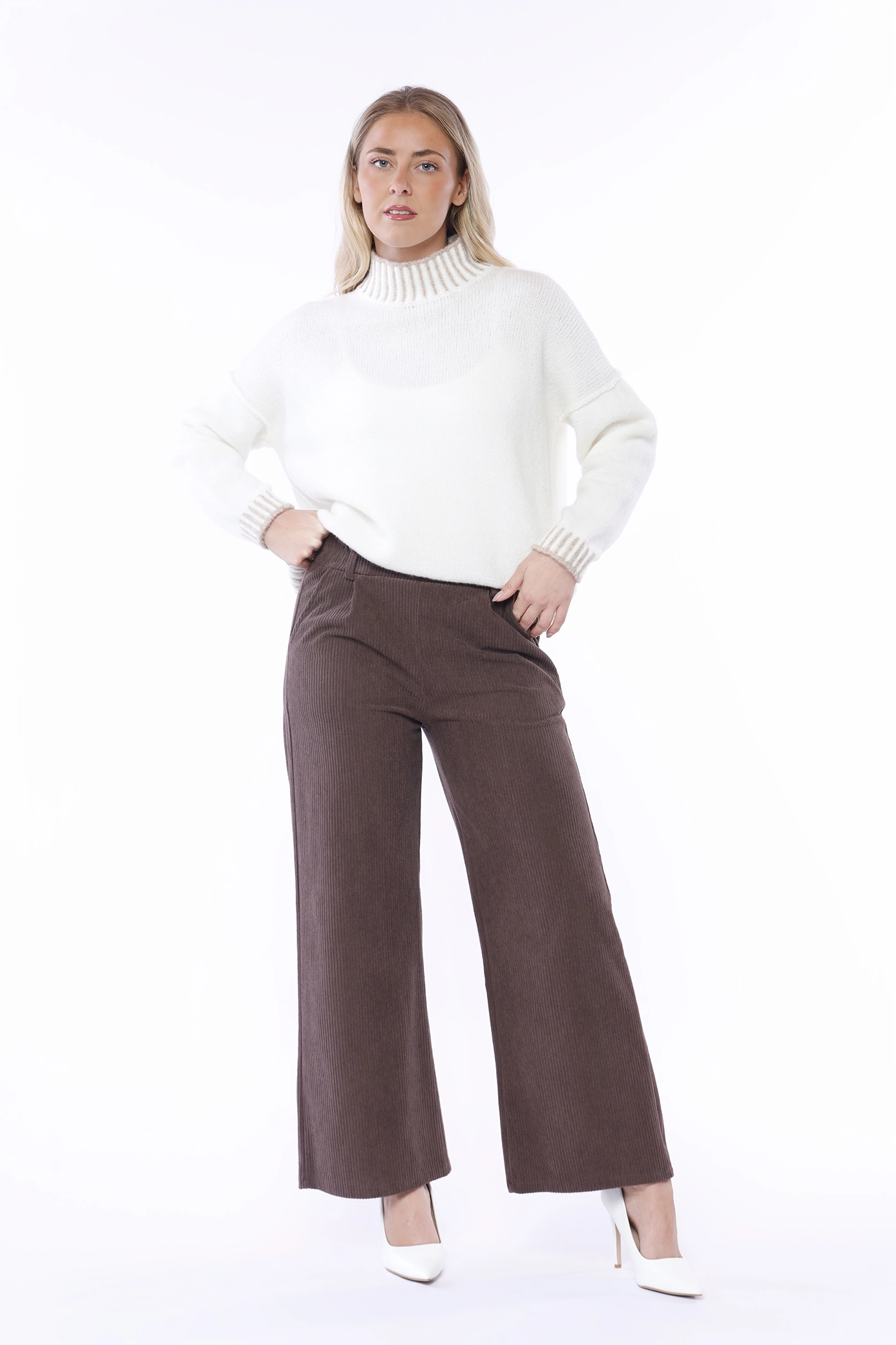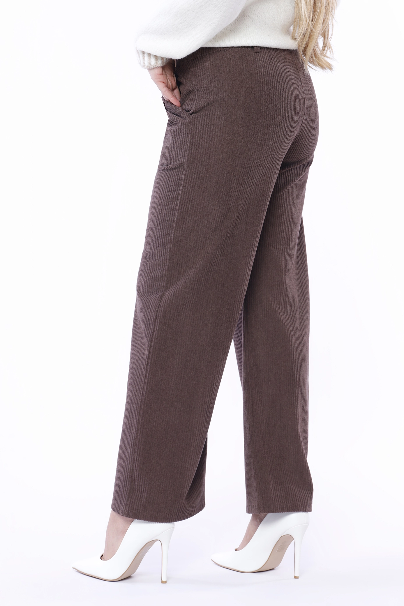 Pantalone in velluto a coste, wide leg, con comode tasche laterali e chiusura a elastico con passanti alla cintura